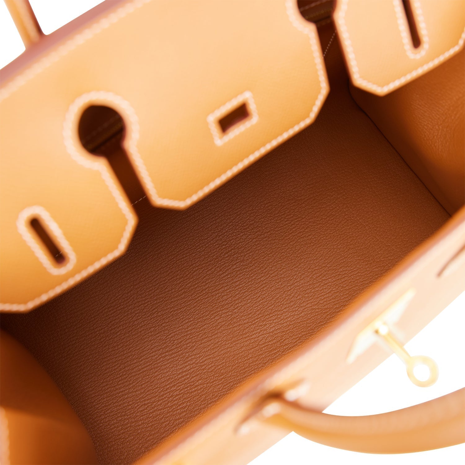 This Sellier Birkin is in gold epsom leather with gold hardware and has tonal stitching, front flap, two straps with center toggle closure, clochette with lock and two keys, and double rolled handles.