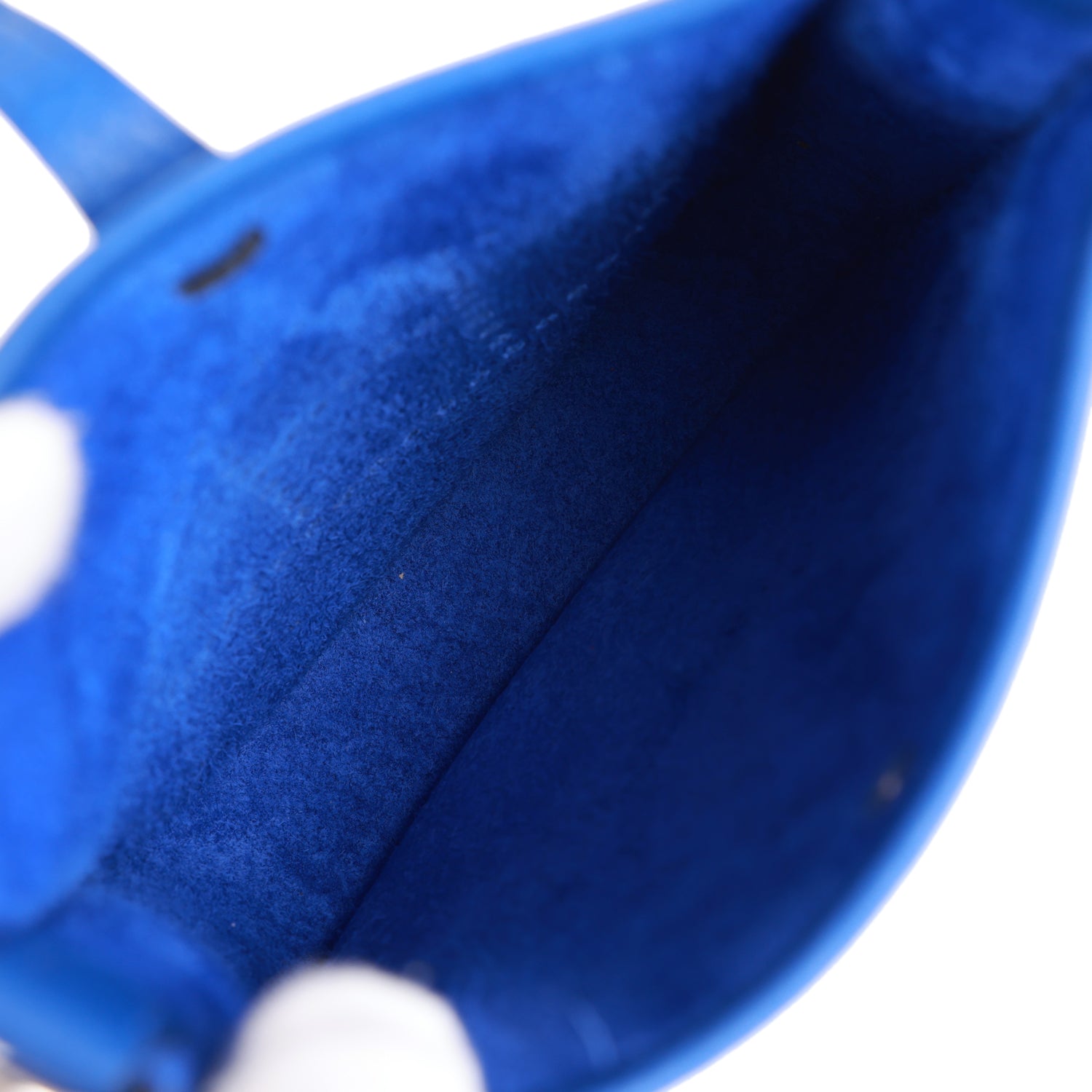 This Evelyne is in Bleu Royal clemence leather with palladium hardware and has tonal stitching, pull tab top closure and a Bleu Royal removable canvas and leather shoulder/crossbody strap.