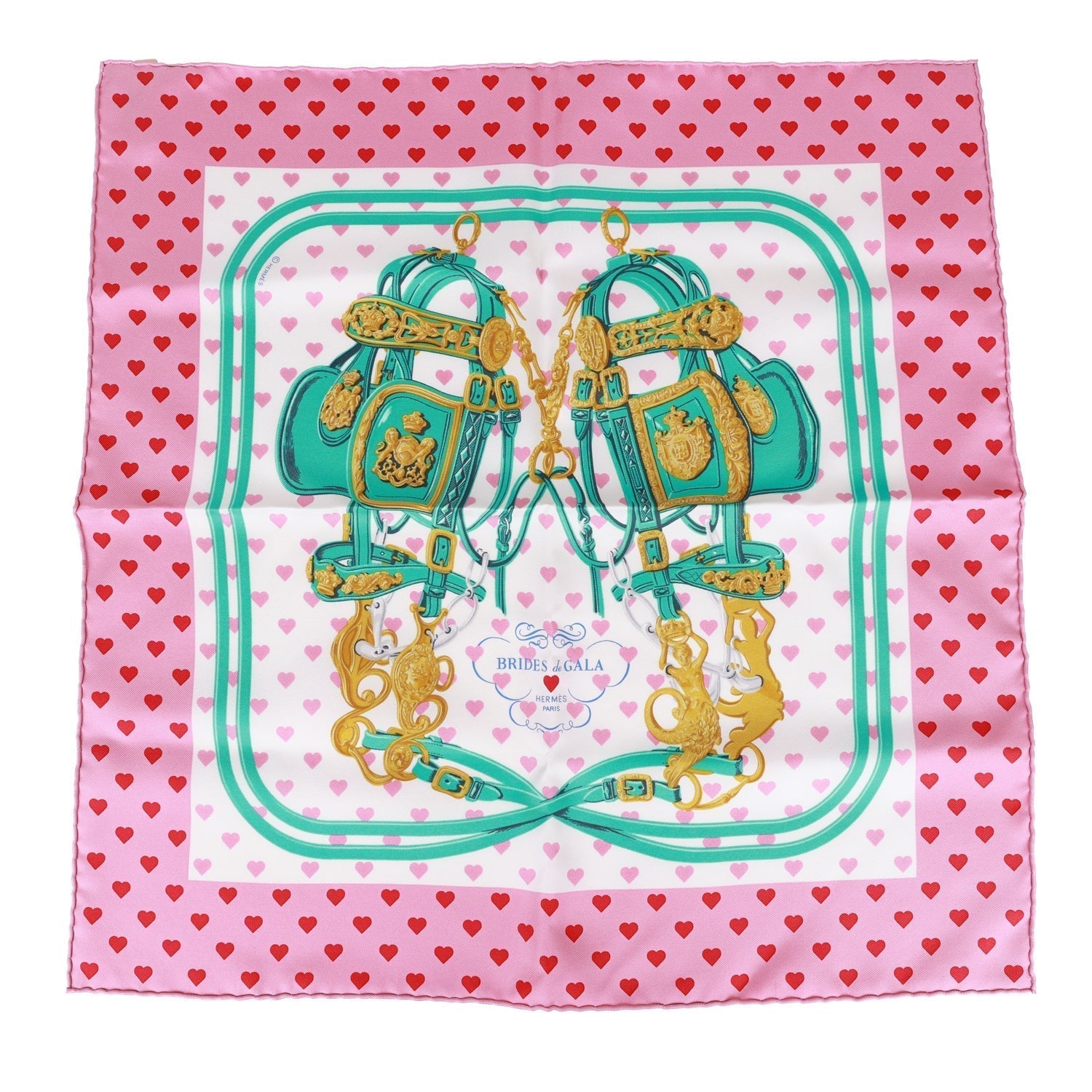 Hermes "Brides de Gala Love" Rose Silk Pocket Square Scarf 45cm
