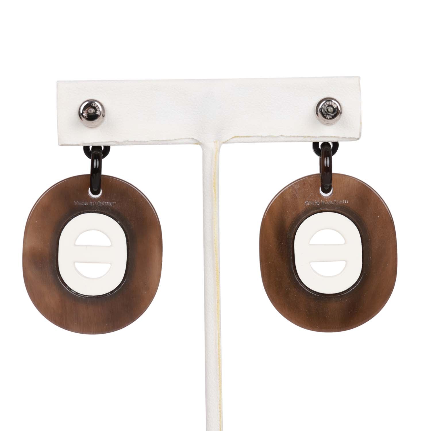 These Hermes Buffalo Horn Drop earrings are in brown buffalo horn acrylic and white lacquer with black metal studs.