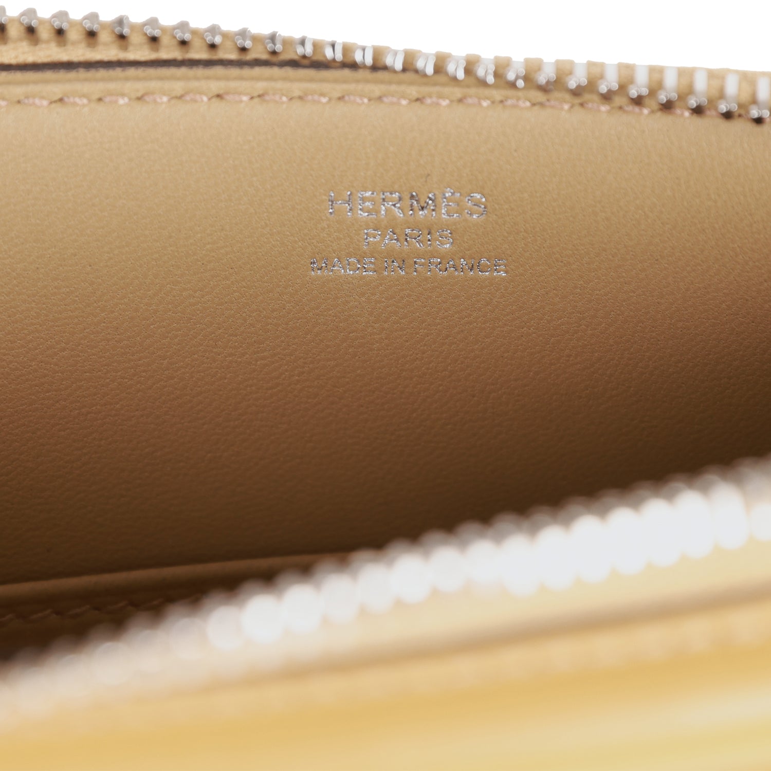 The interior is lined with Poussiere swift leather with one slip pocket.