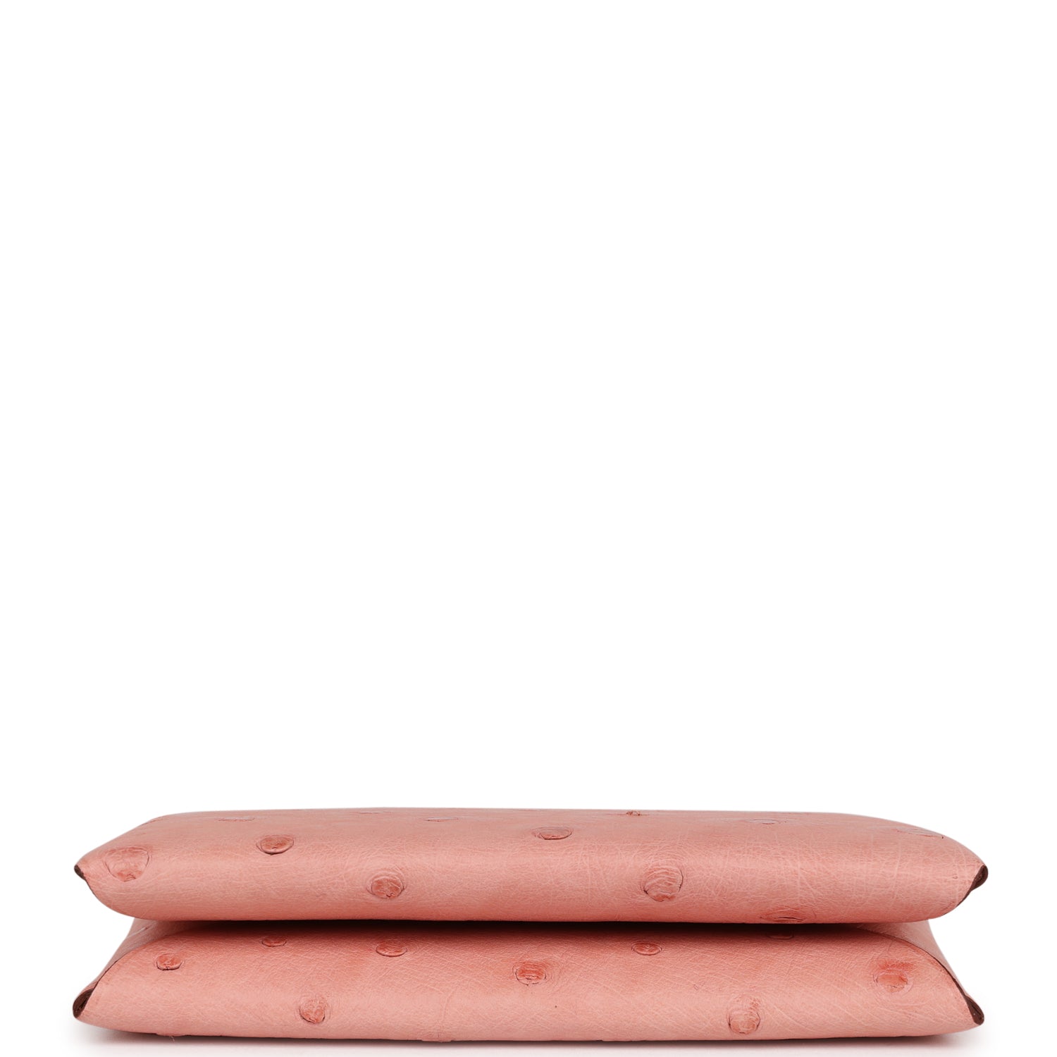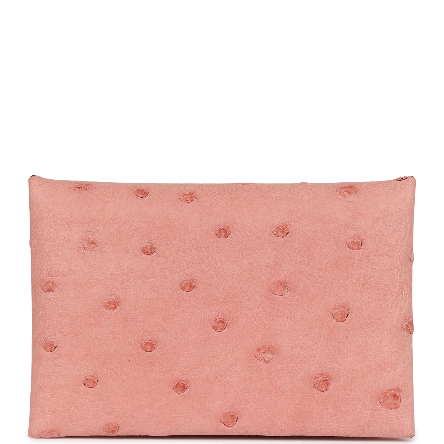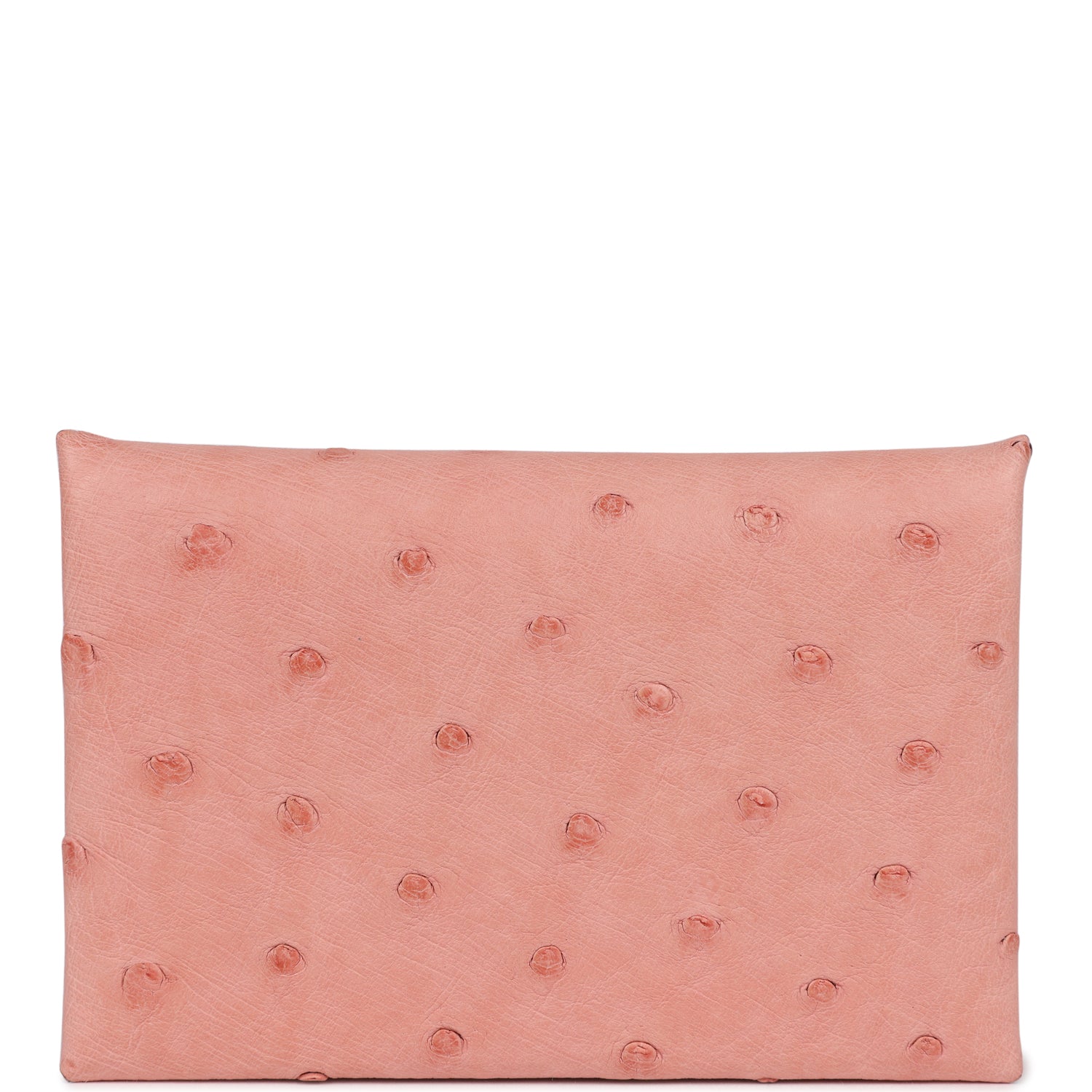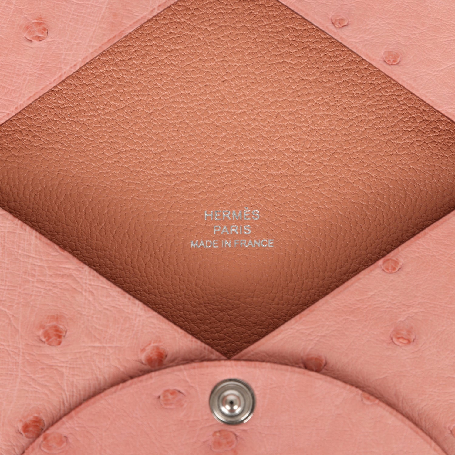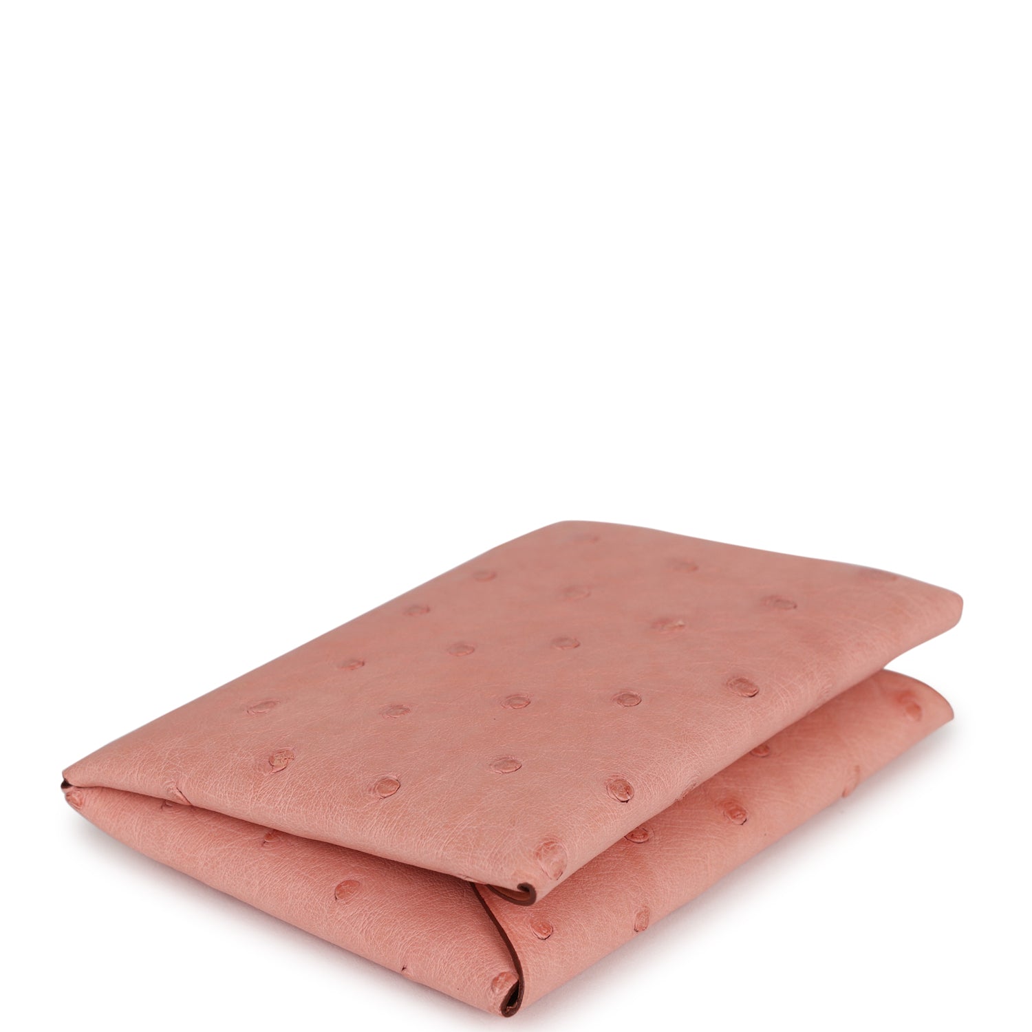 This Calvi cardholder wallet is in Terre Cuite ostrich with palladium hardware and a front snap closure.