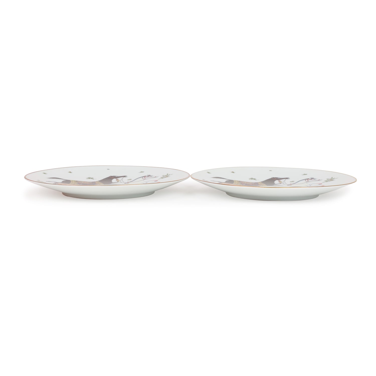 Hermes "Cheval D'Orient" desert plate set of porcelain in multicolor.