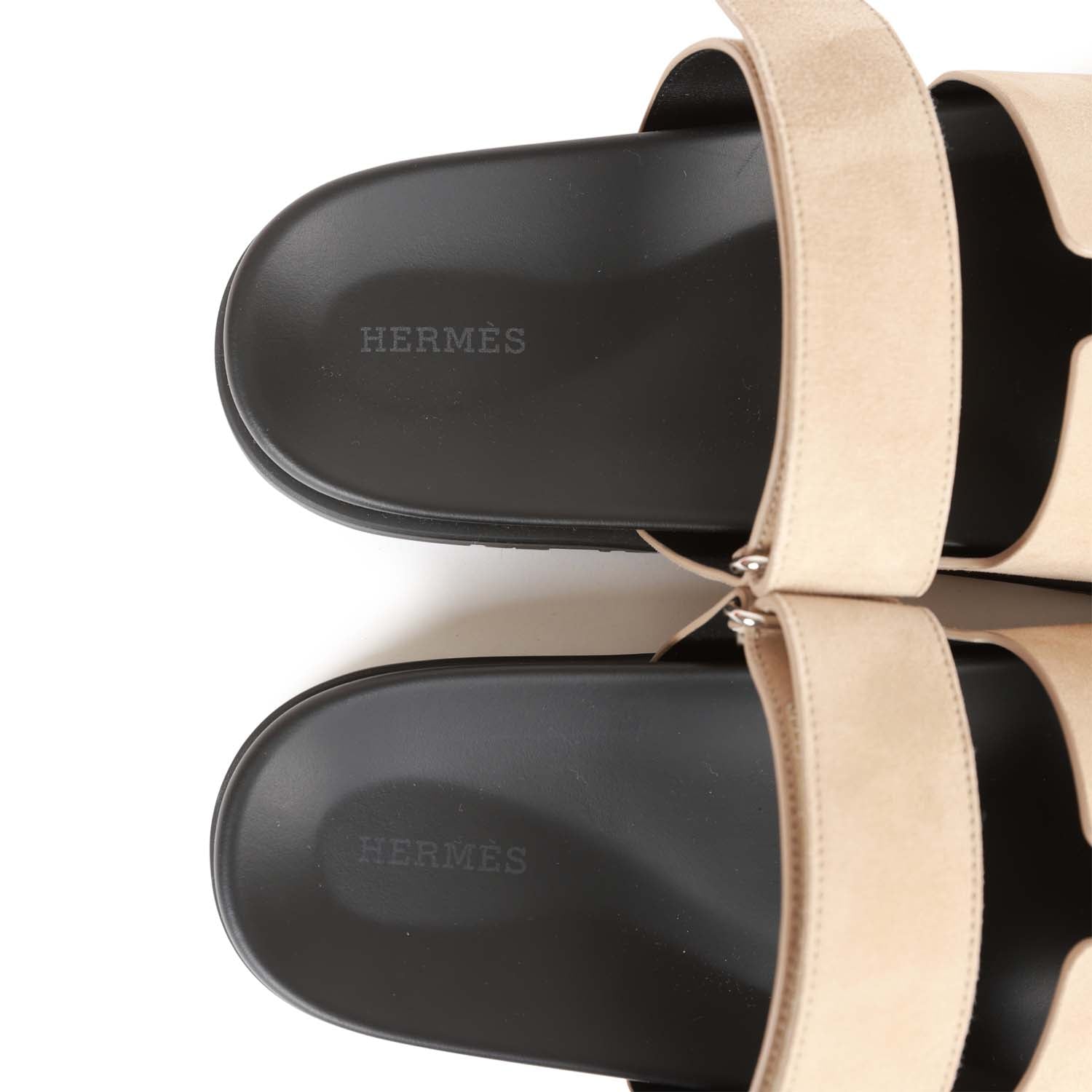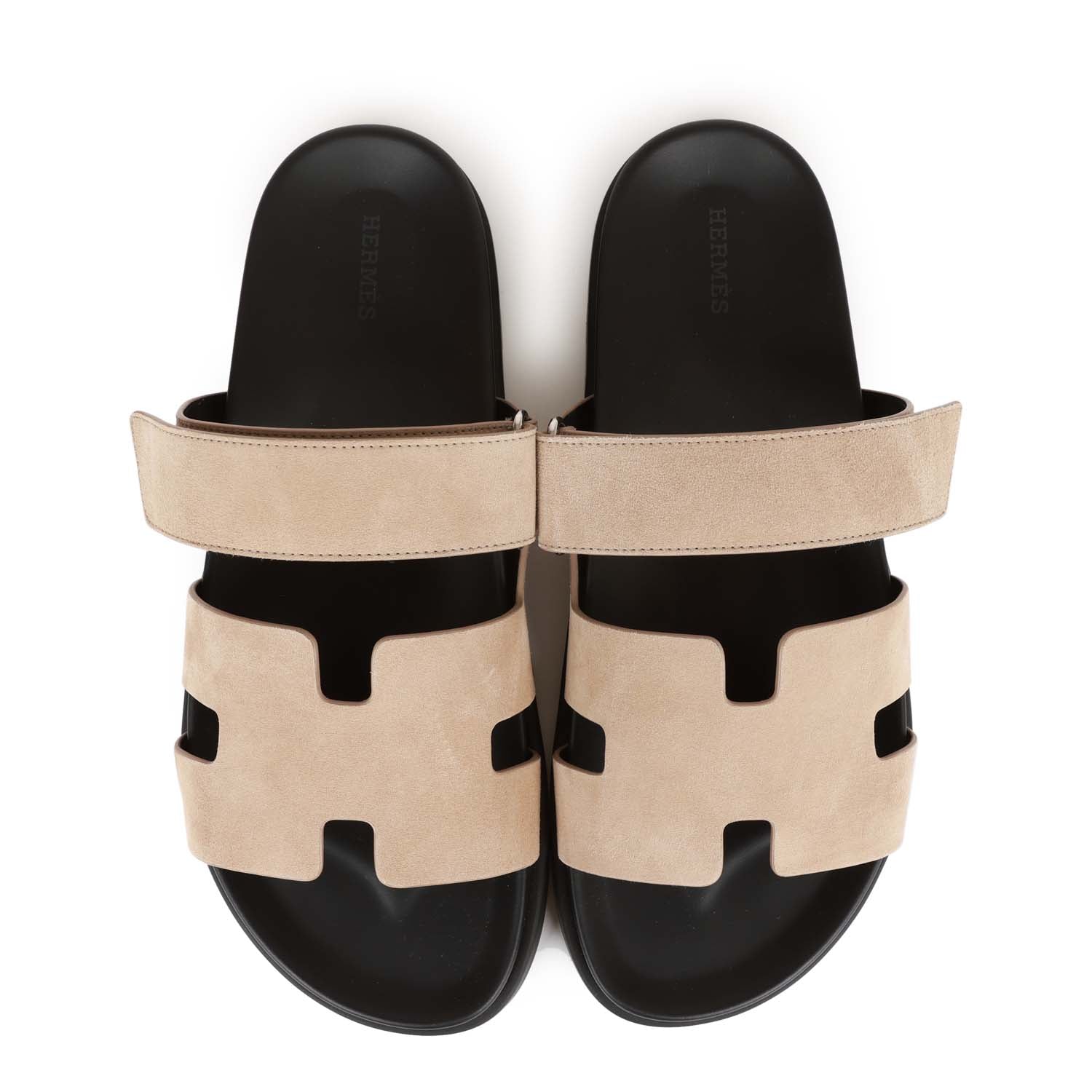 This pair of Chypre sandals are in Gris Tourterelle suede and feature the iconic H and a velcro crossover strap.