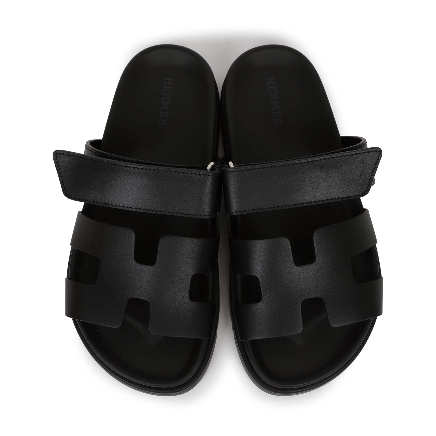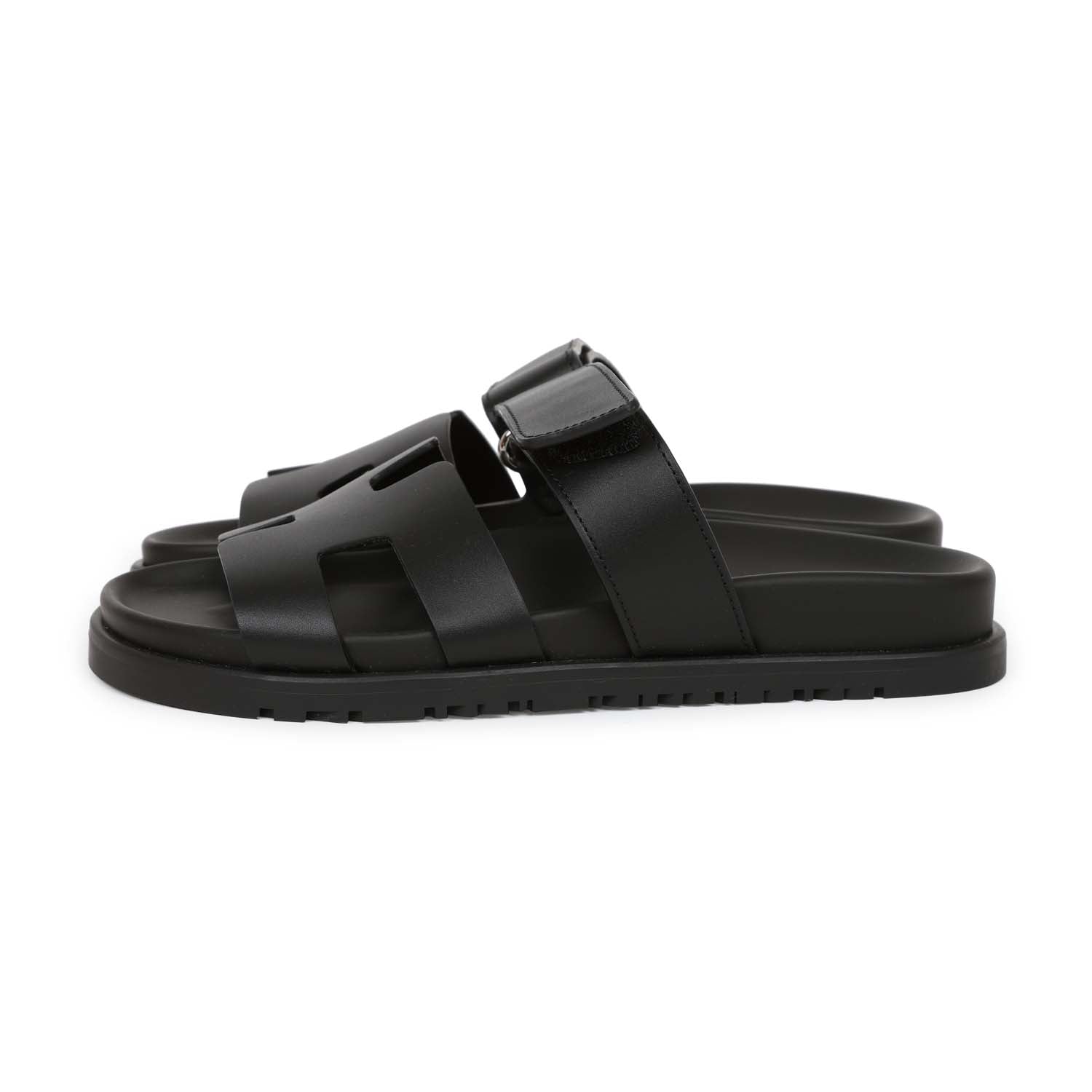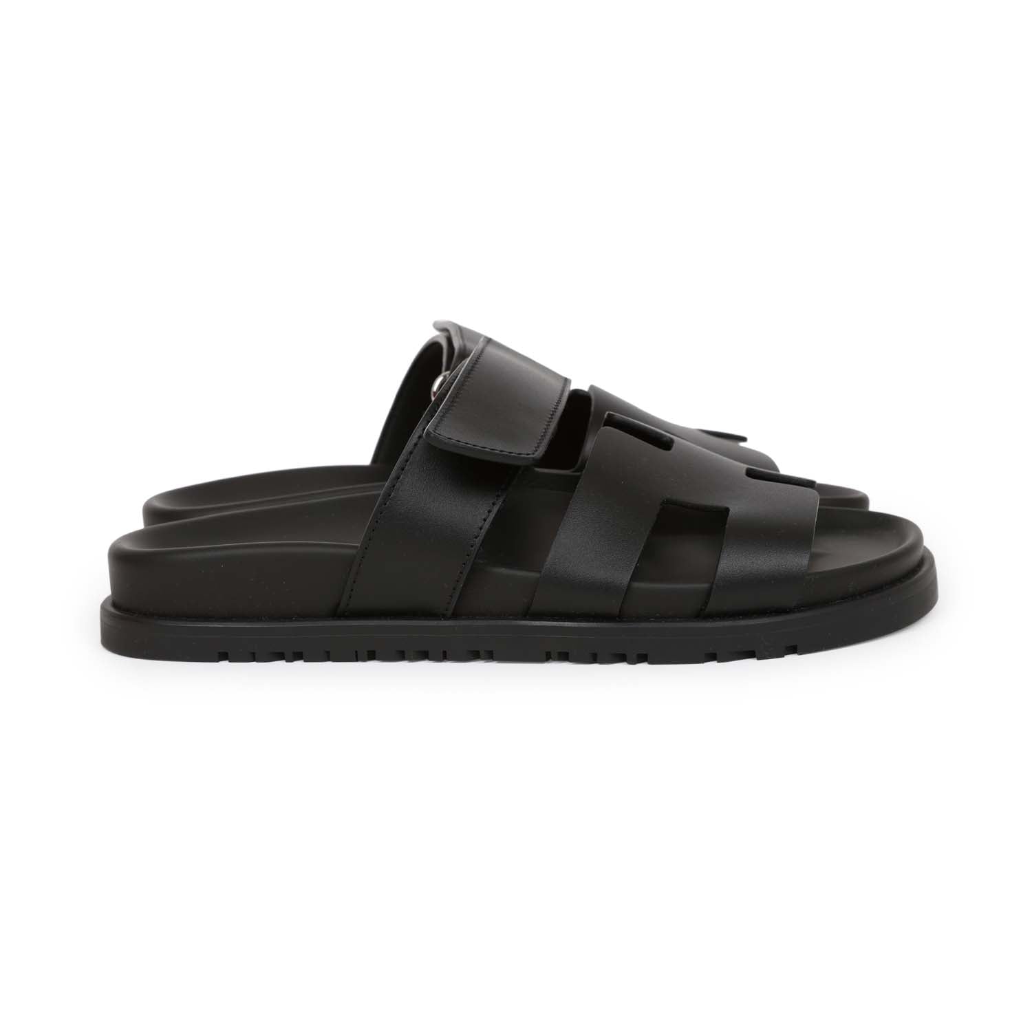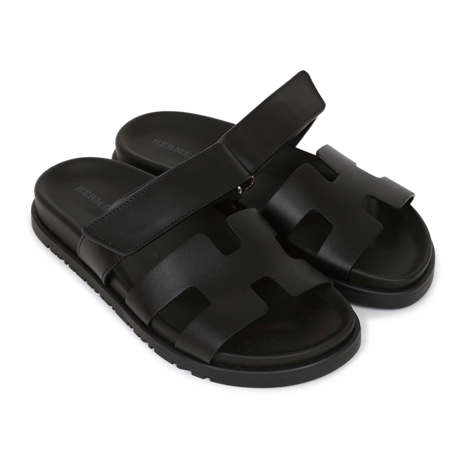 This pair of Cypre Techno sandals are in Black calfskin and feature the iconic H and a velcro crossover strap.