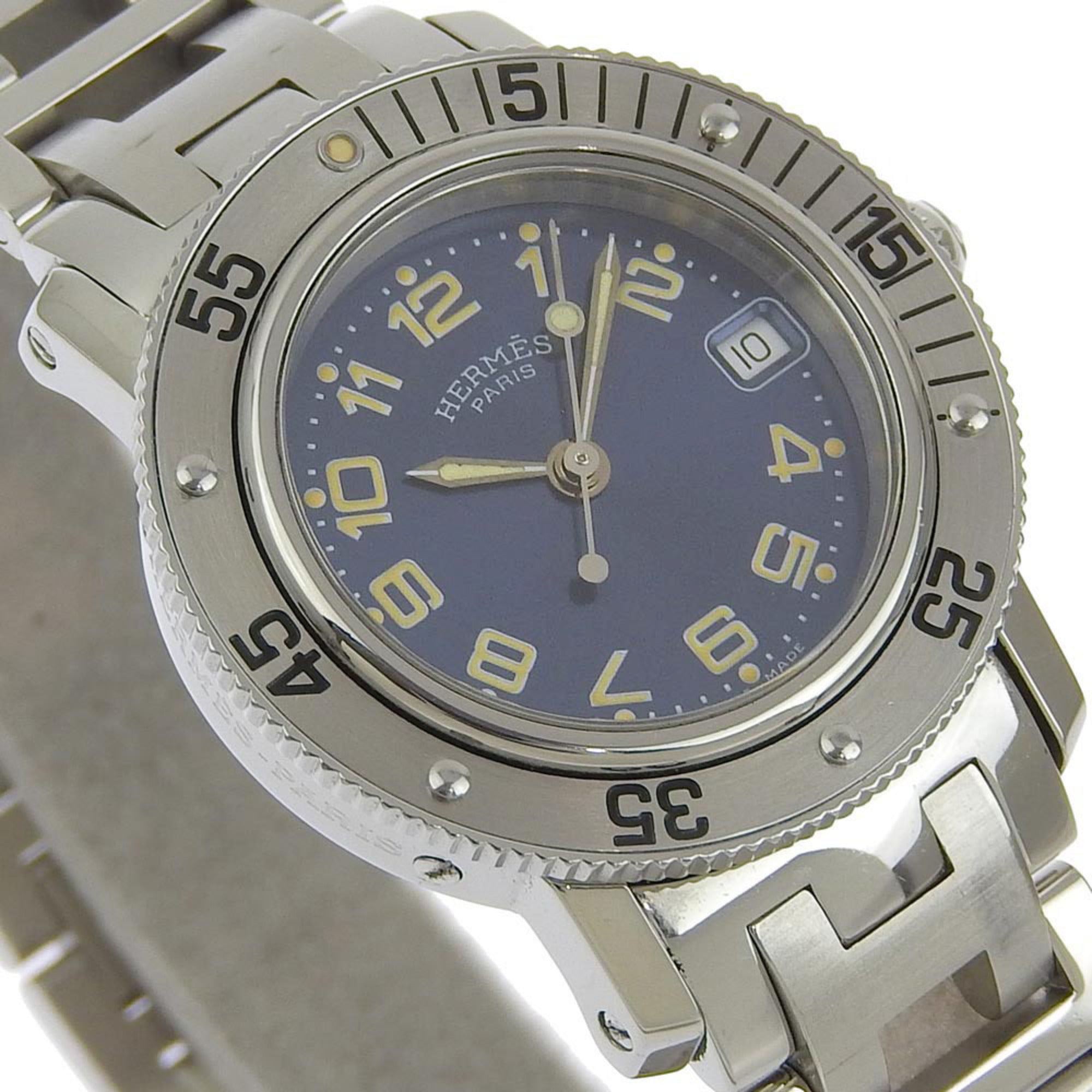 Hermes Clipper Watch Diver CL5.210 Stainless Steel Silver Quartz Analog Display Ladies Navy Dial