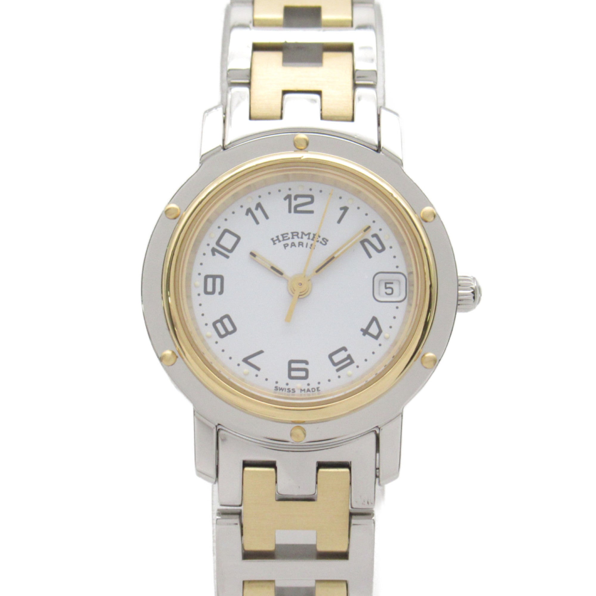 HERMES Clipper Wrist Watch Watch Wrist Watch CL4.220 Quartz White Gold Plated Stainless Steel