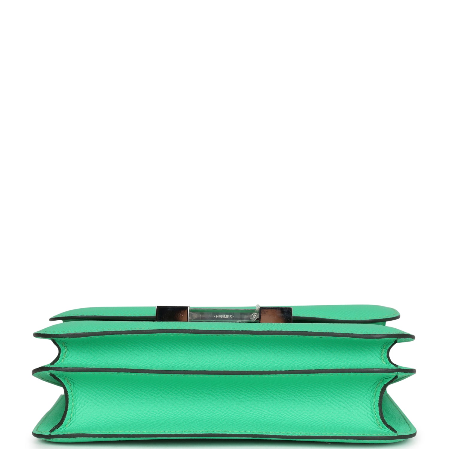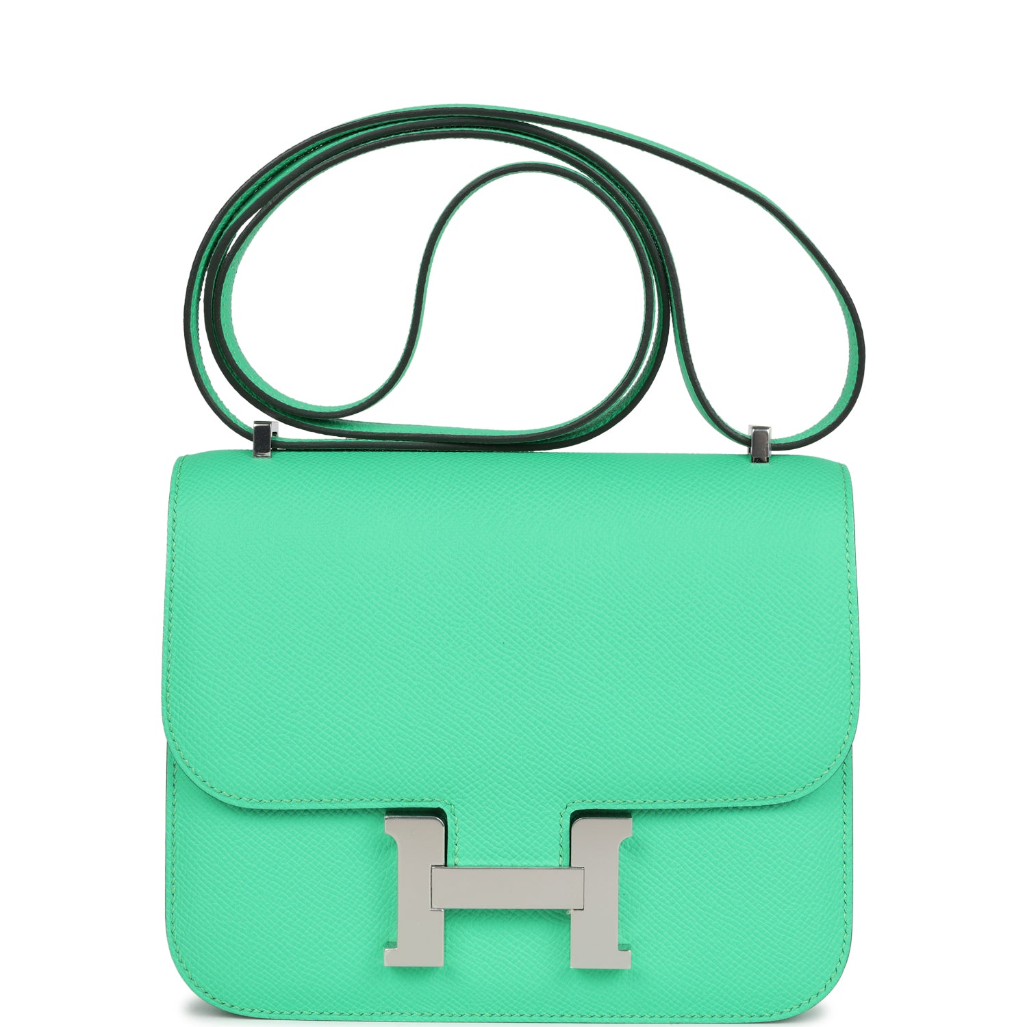 This Constance 1-18 is in Vert Comics epsom leather with gold hardware and has tonal stitching, a gold "H" snap lock closure and adjustable shoulder strap.