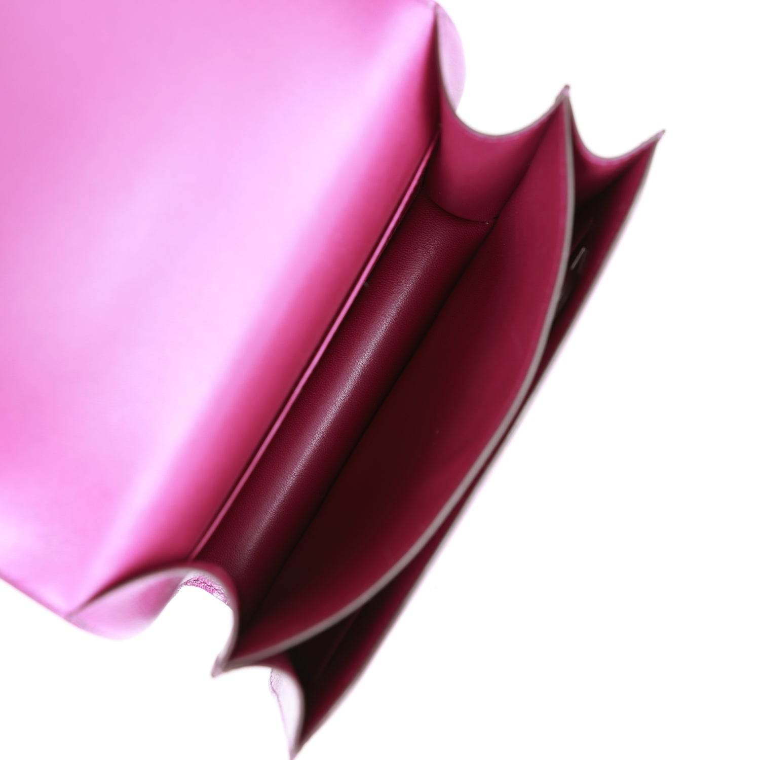 This Constance is in Anemone chevre chamkila leather with Permabrass hardware and has tonal stitching, a metal "H" snap lock closure and adjustable shoulder strap.
