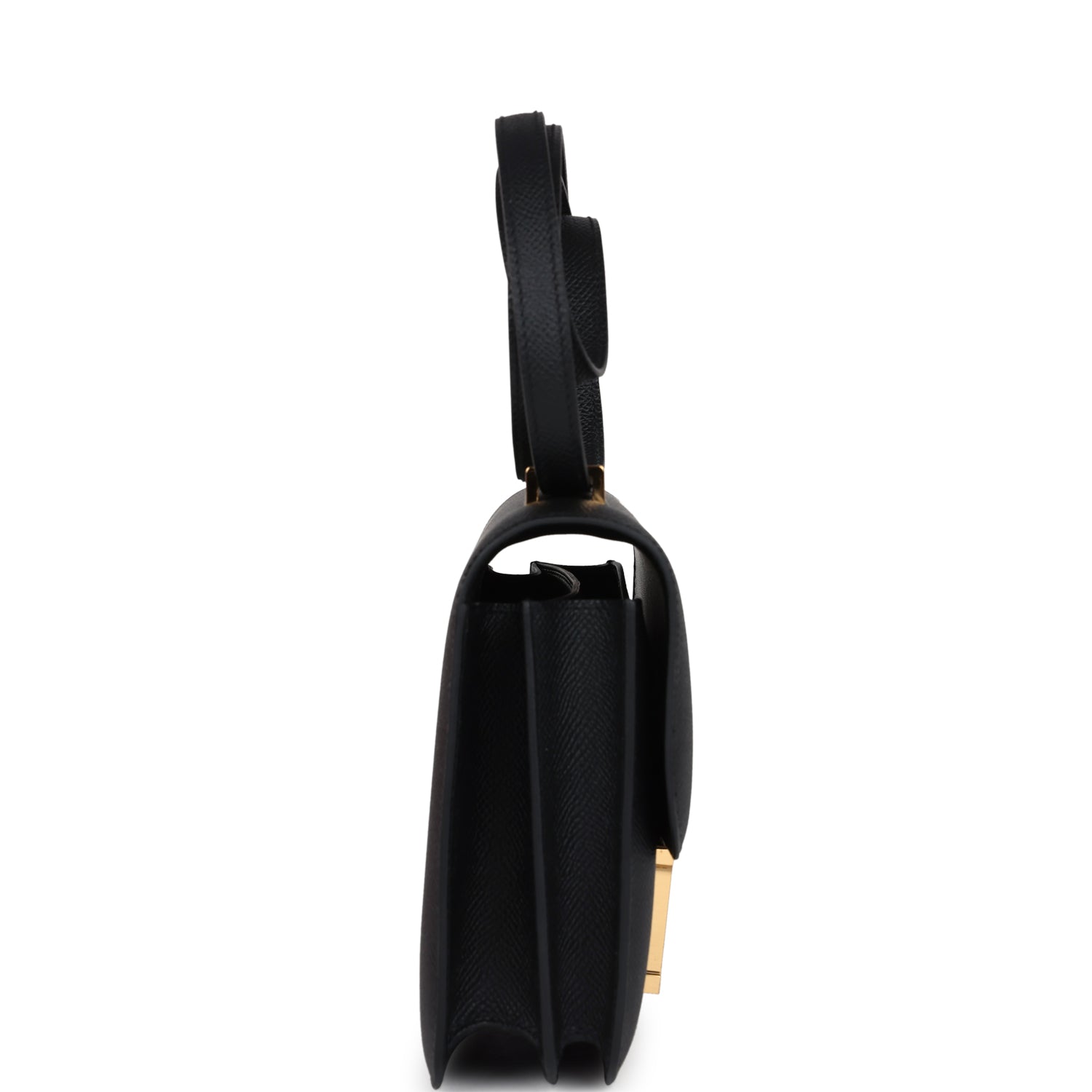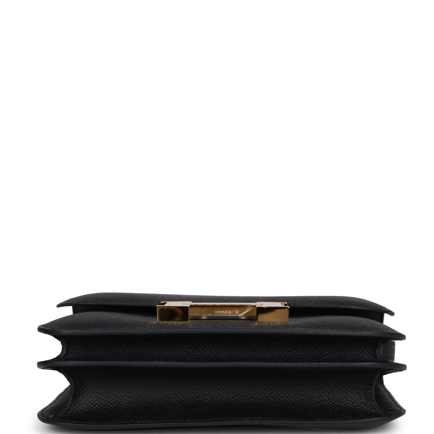 This Constance 1-18 is in Black epsom leather with gold hardware and has tonal stitching, a metal "H" snap lock closure and adjustable shoulder strap.