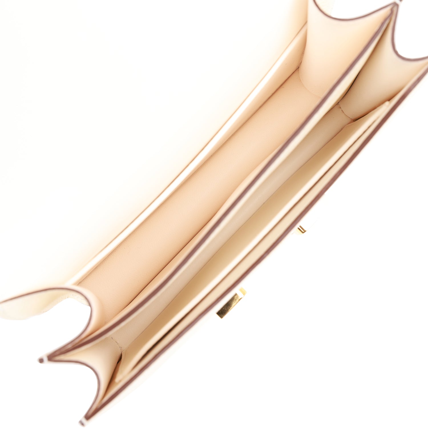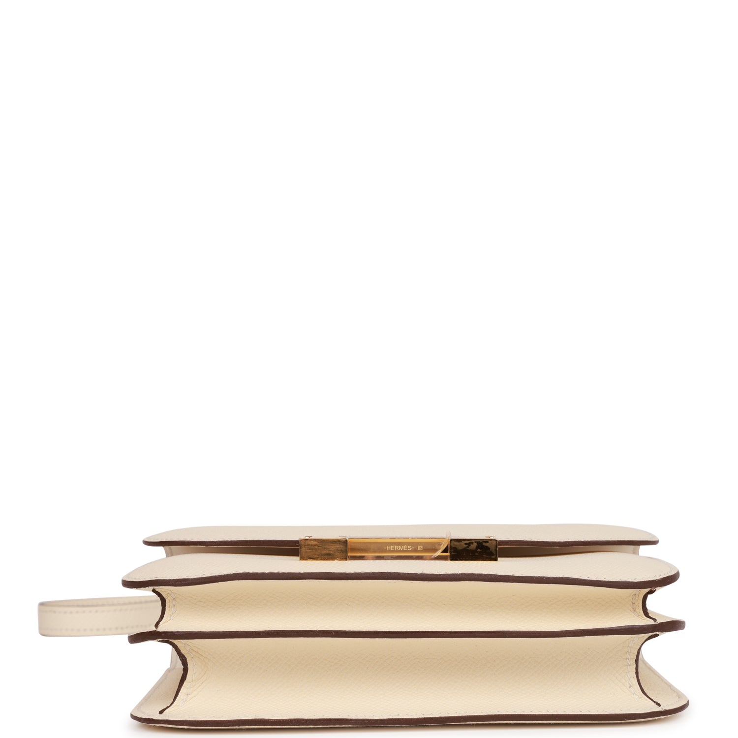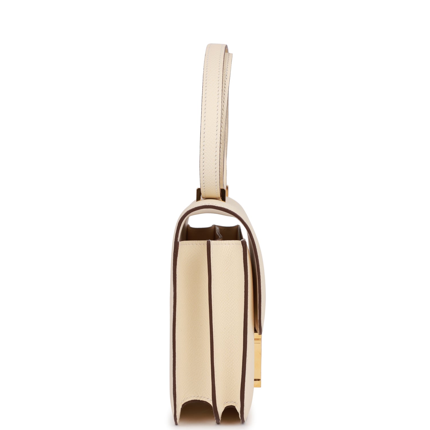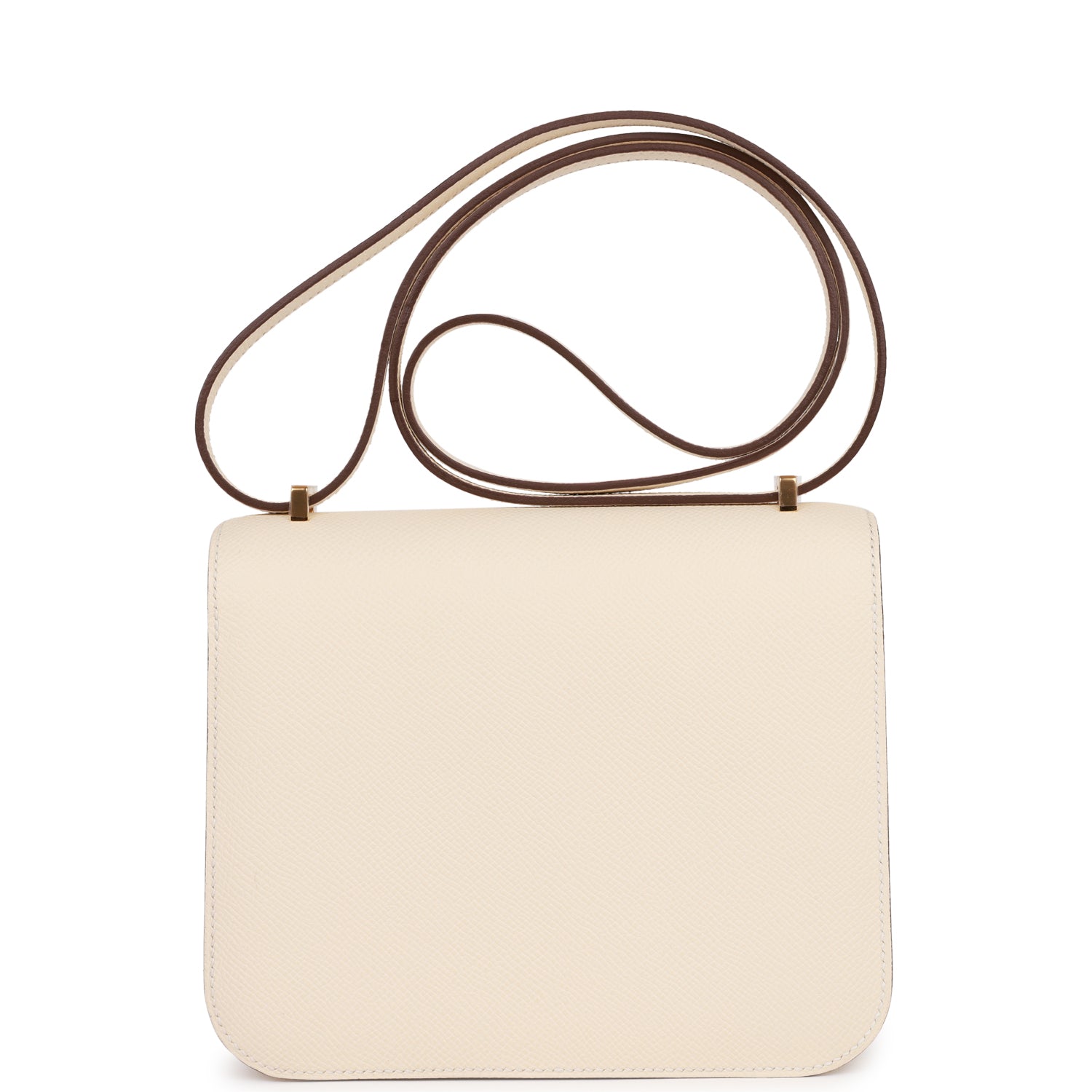 This Constance is in Nata epsom leather with gold hardware and has tonal stitching, a metal "H" snap lock closure and adjustable shoulder strap.