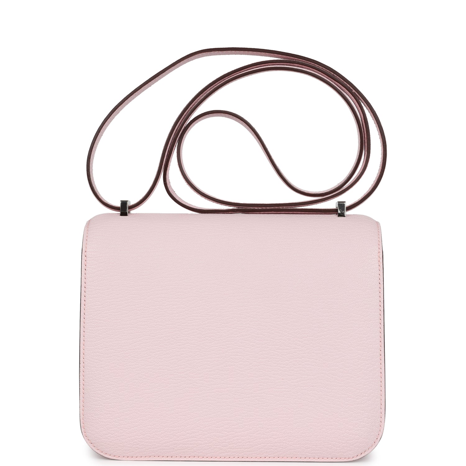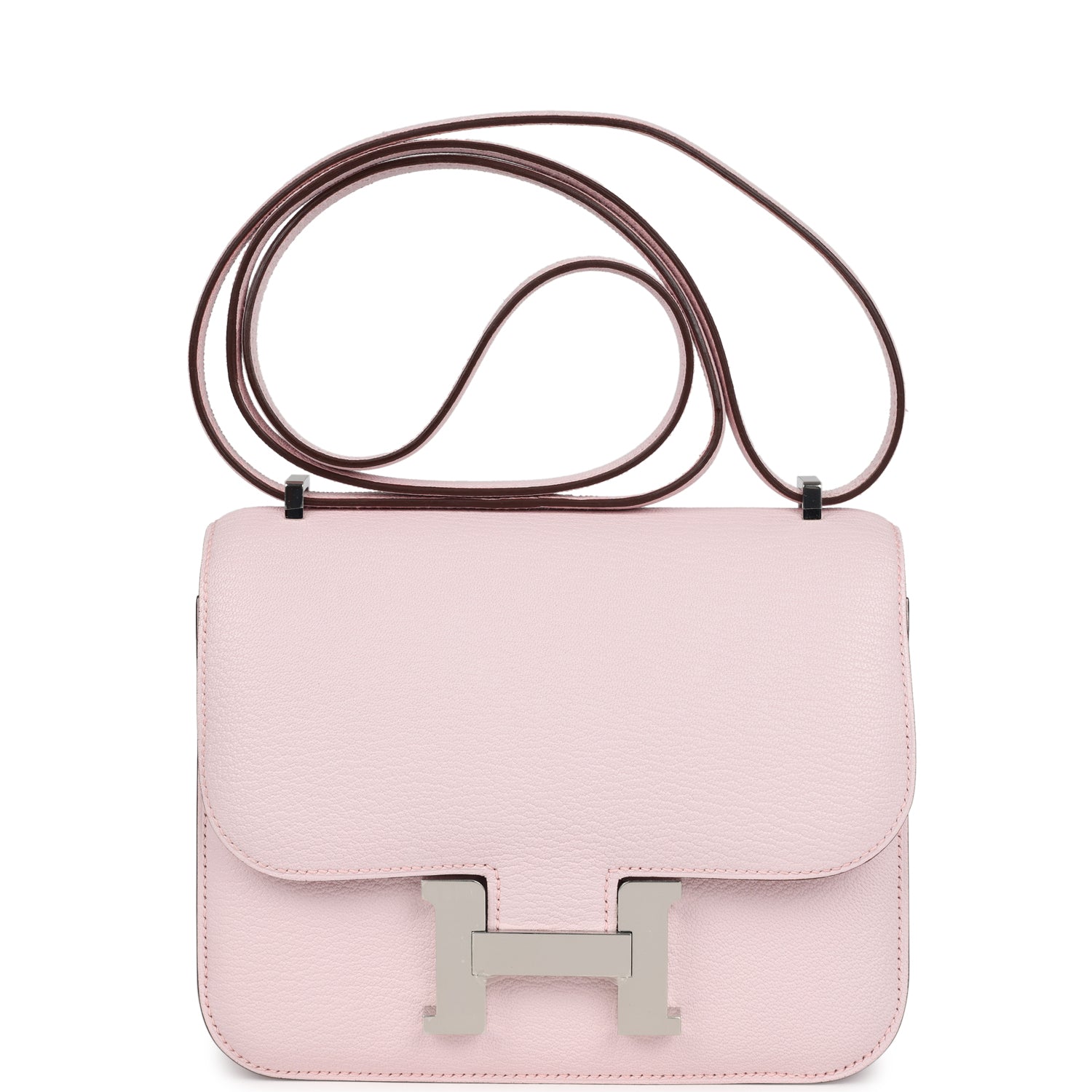 This Constance 1-18 is in Rose Darling chevre mysore leather with palladium hardware and has tonal stitching, a metal "H" snap lock closure and adjustable shoulder strap.