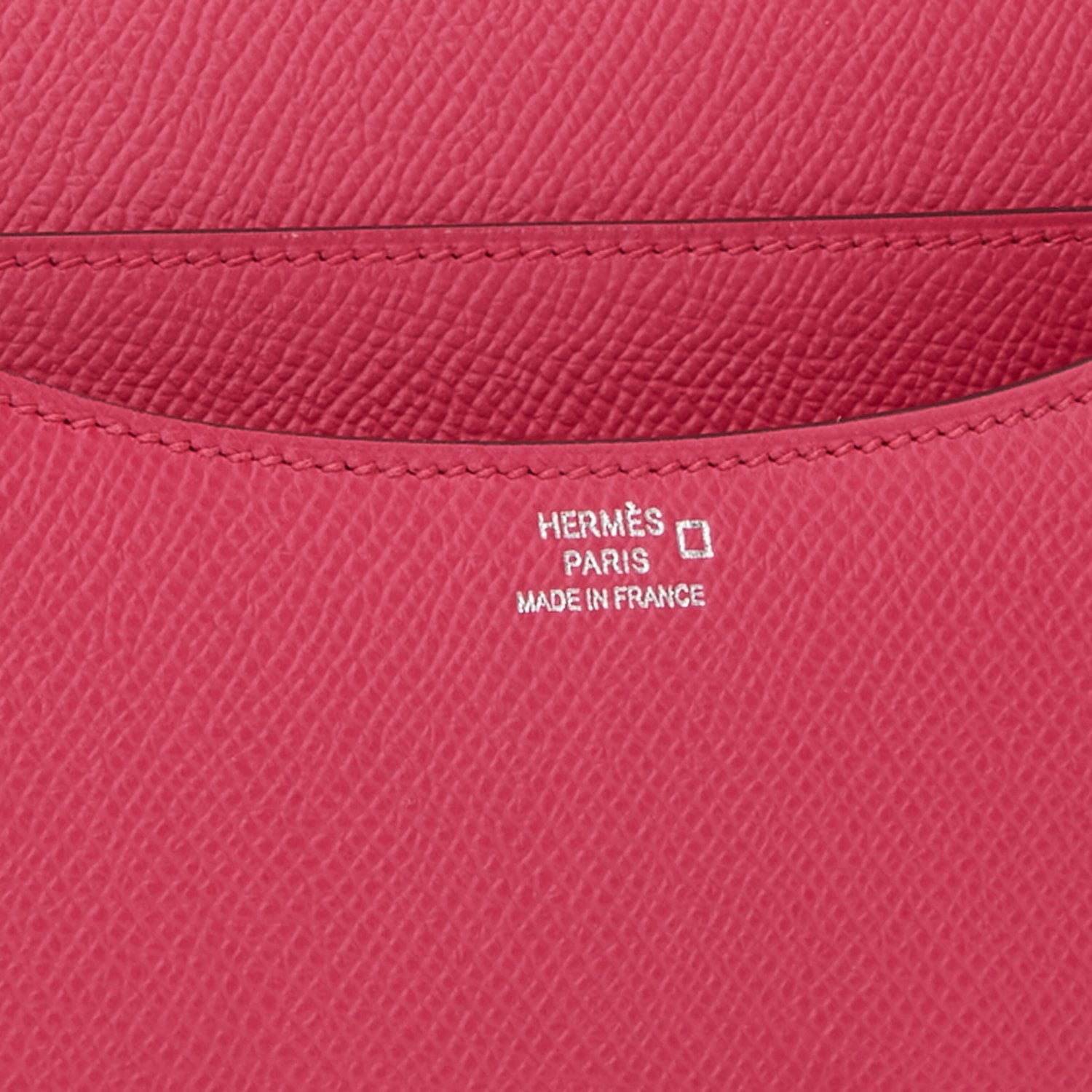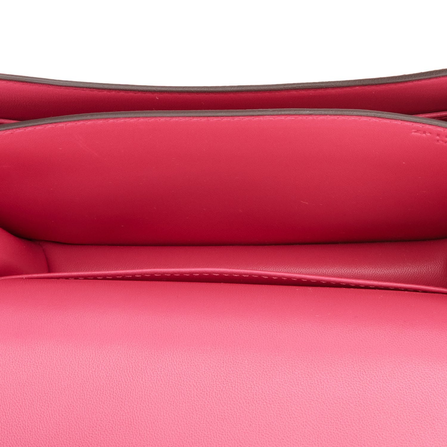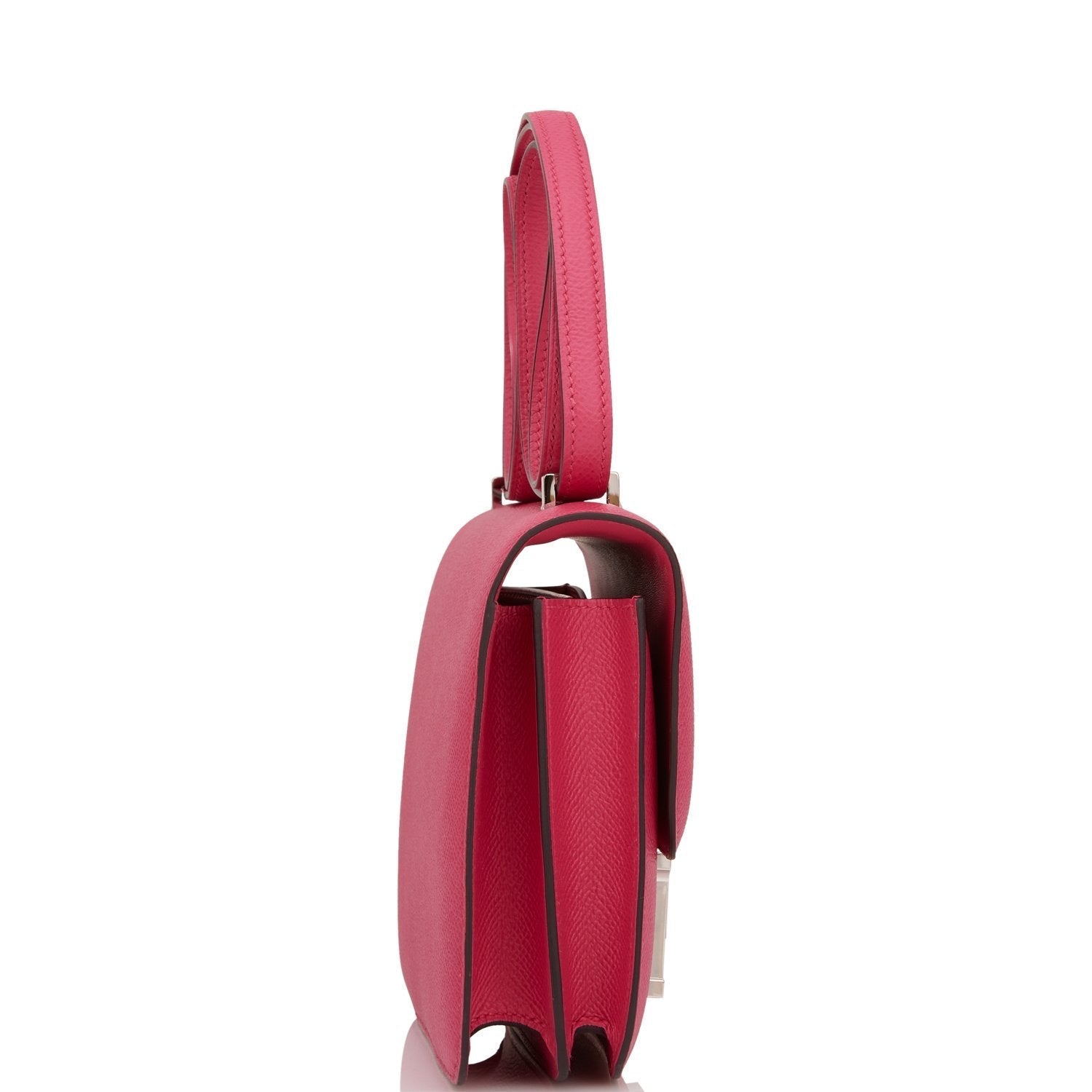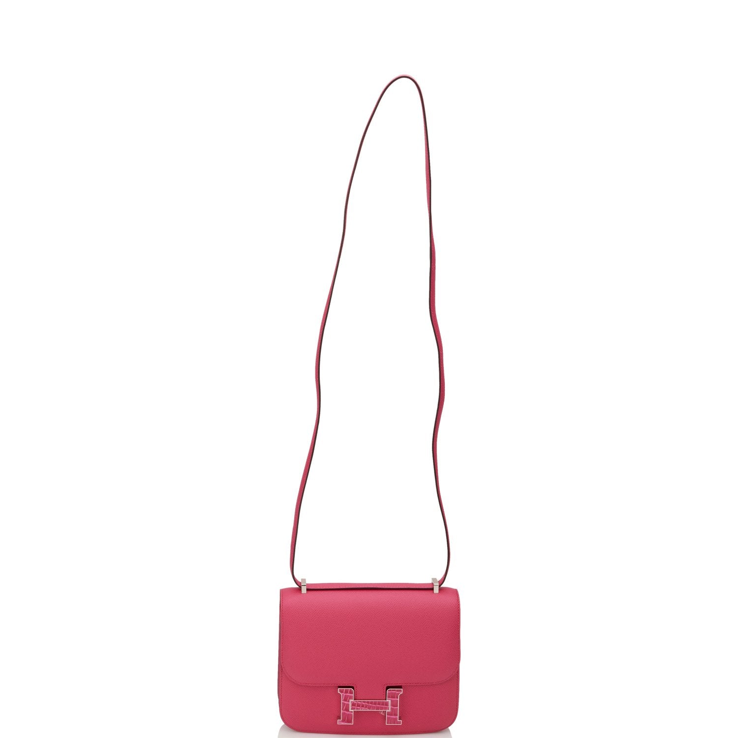 This Constance is in Rose Mexico epsom leather with palladium hardware and has tonal stitching, a Rose Mexico alligator and metal "H" snap lock closure and adjustable shoulder strap.