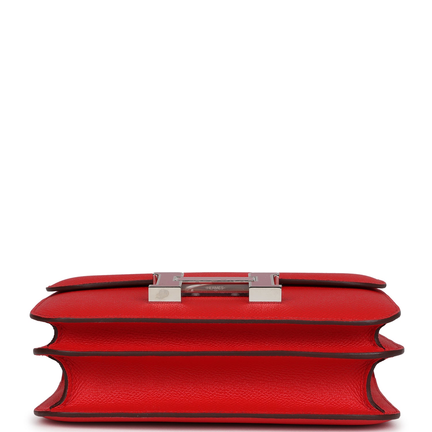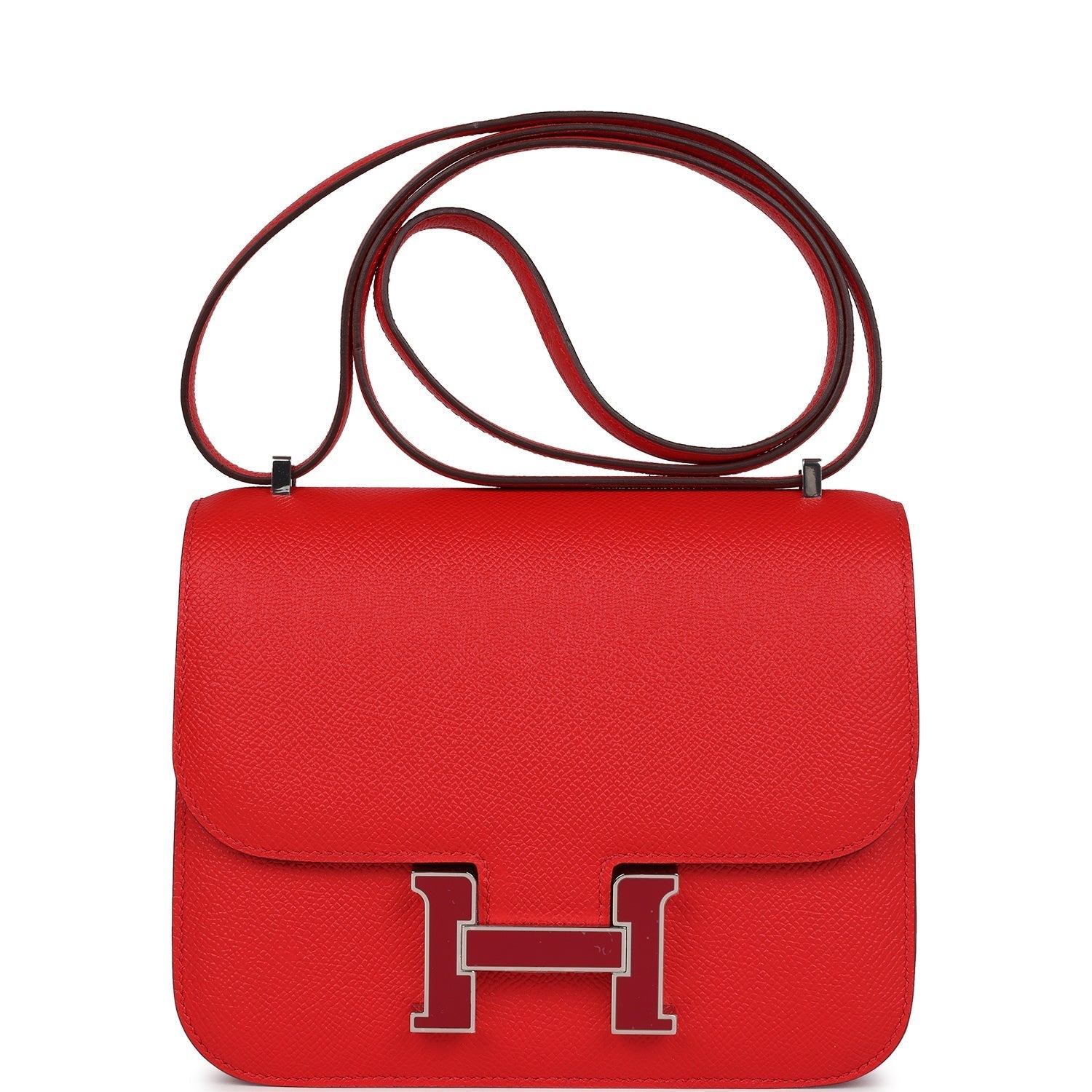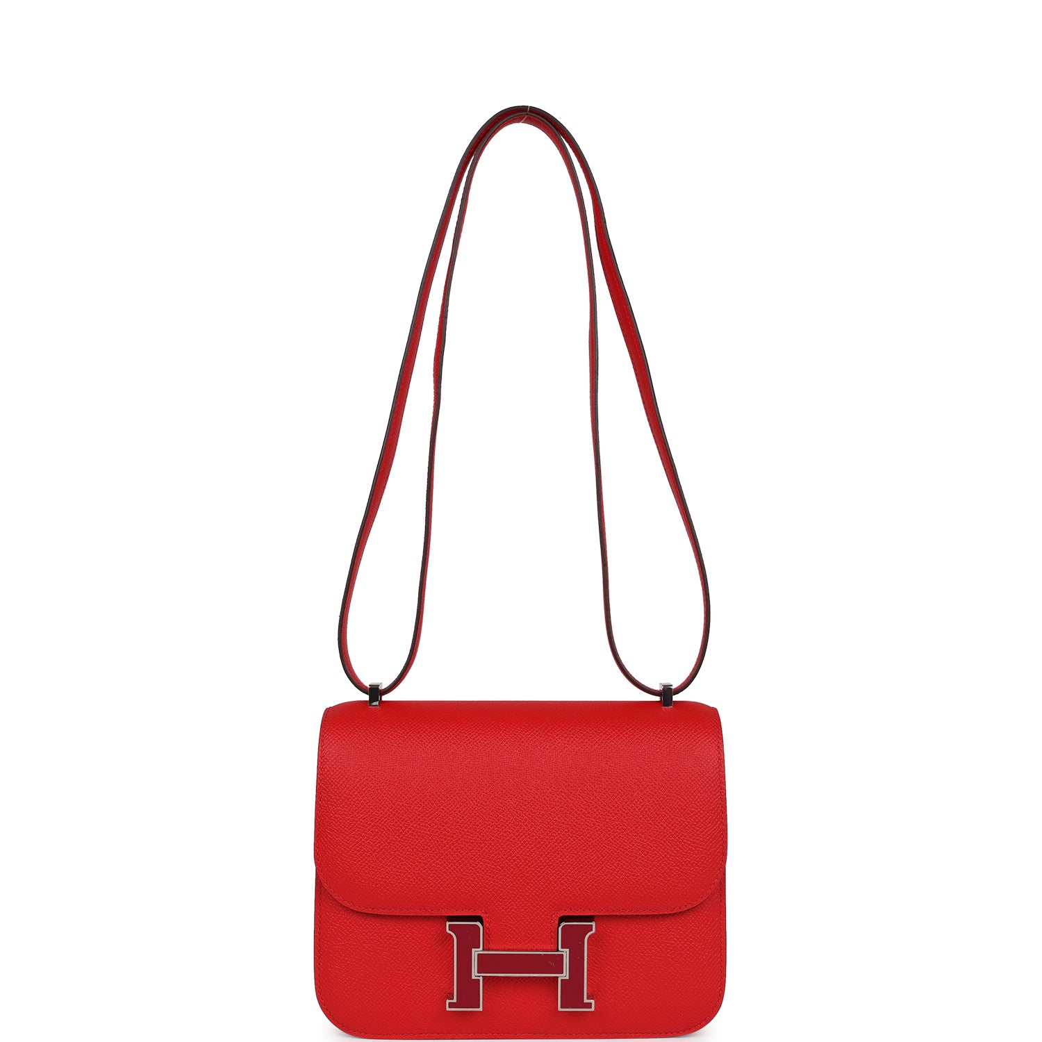 This Constance is in Rouge De Coeur epsom leather with palladium and lacquered metal hardware, has tonal stitching, a metal "H" snap lock closure and an adjustable shoulder strap.