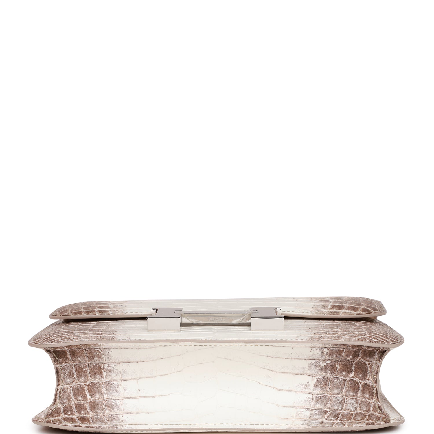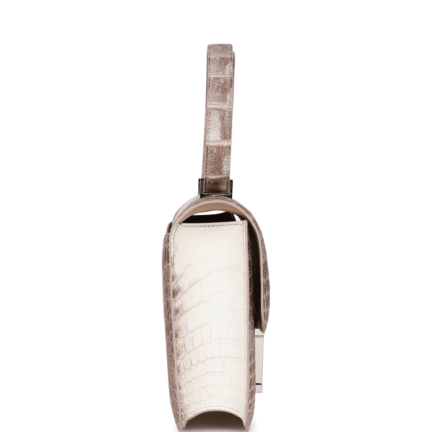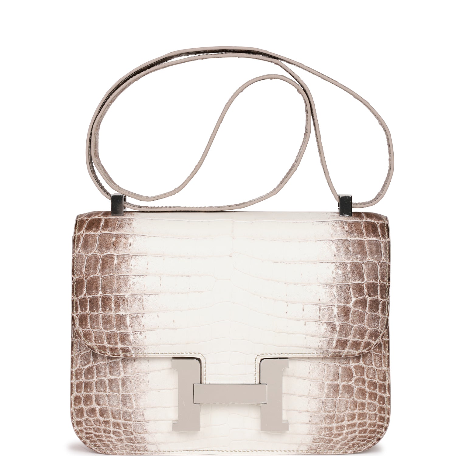 This rare Constance is of Himalaya matte Niloticus crocodile with palladium hardware and features tonal stitching, a "H" snap lock closure, exterior pocket, and an adjustable shoulder strap.