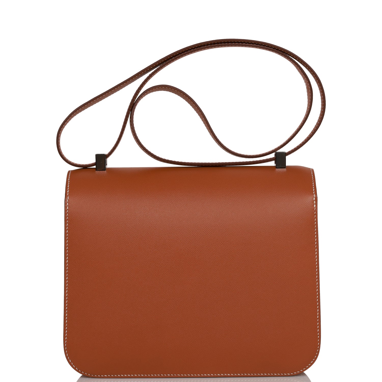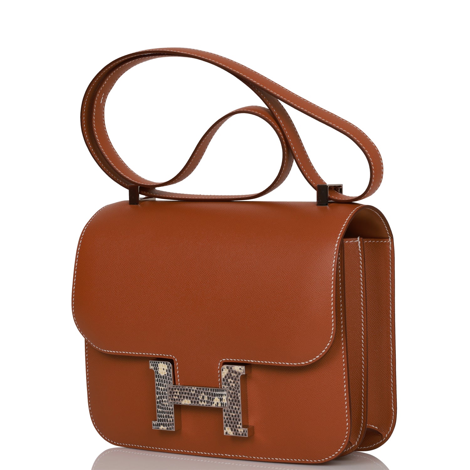 This Constance is in Gold madame leather with palladium hardware and has tonal stitching, an ombre Lizard "H" snap lock closure, and adjustable shoulder strap.