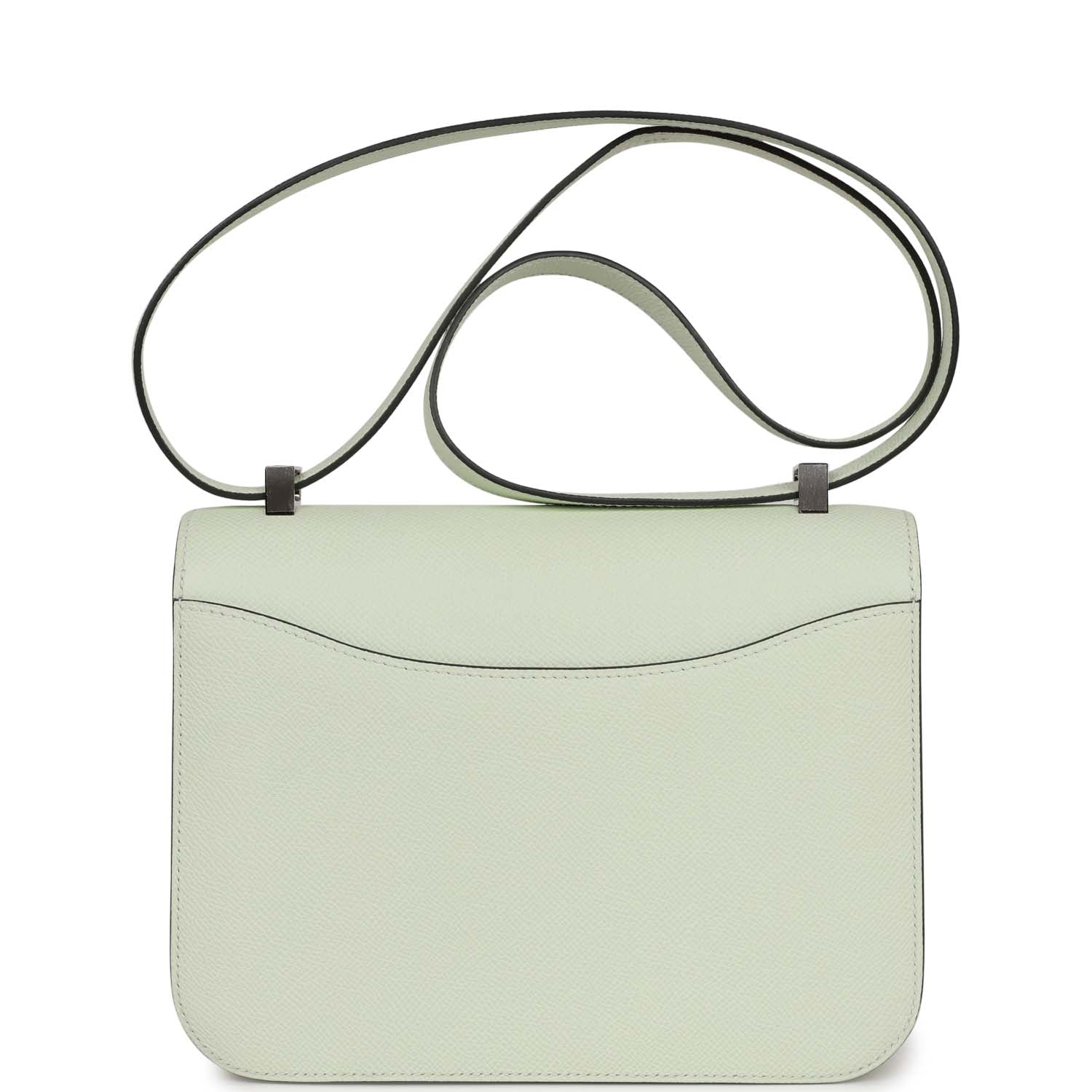 This Constance 1-24, is in Vert Fizz epsom with palladium hardware and features tonal stitching, a "H" snap lock closure, and an adjustable shoulder strap.