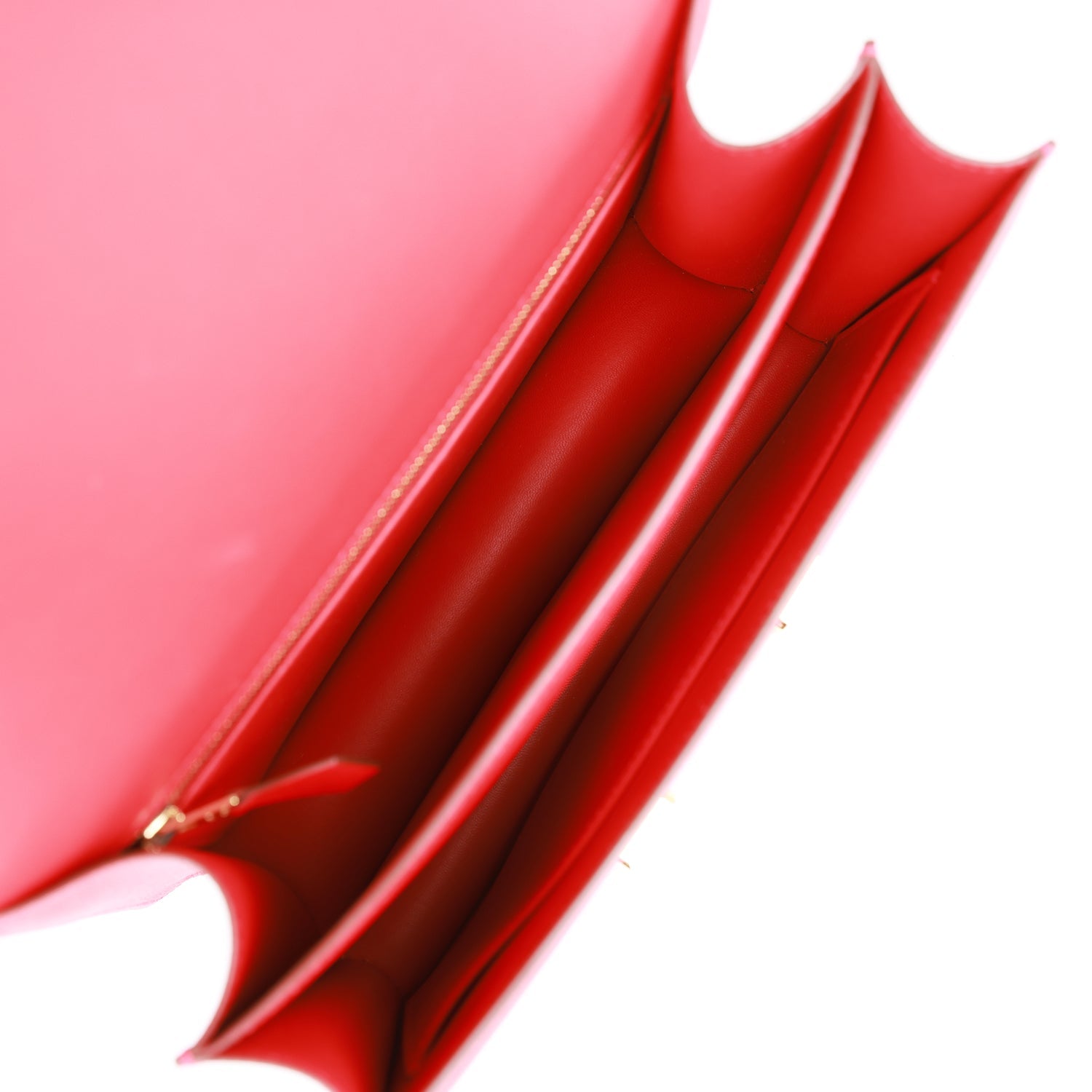 The interior is lined with Rouge Casaque lambskin leather and has a zip pocket with an Hermes engraved pull.