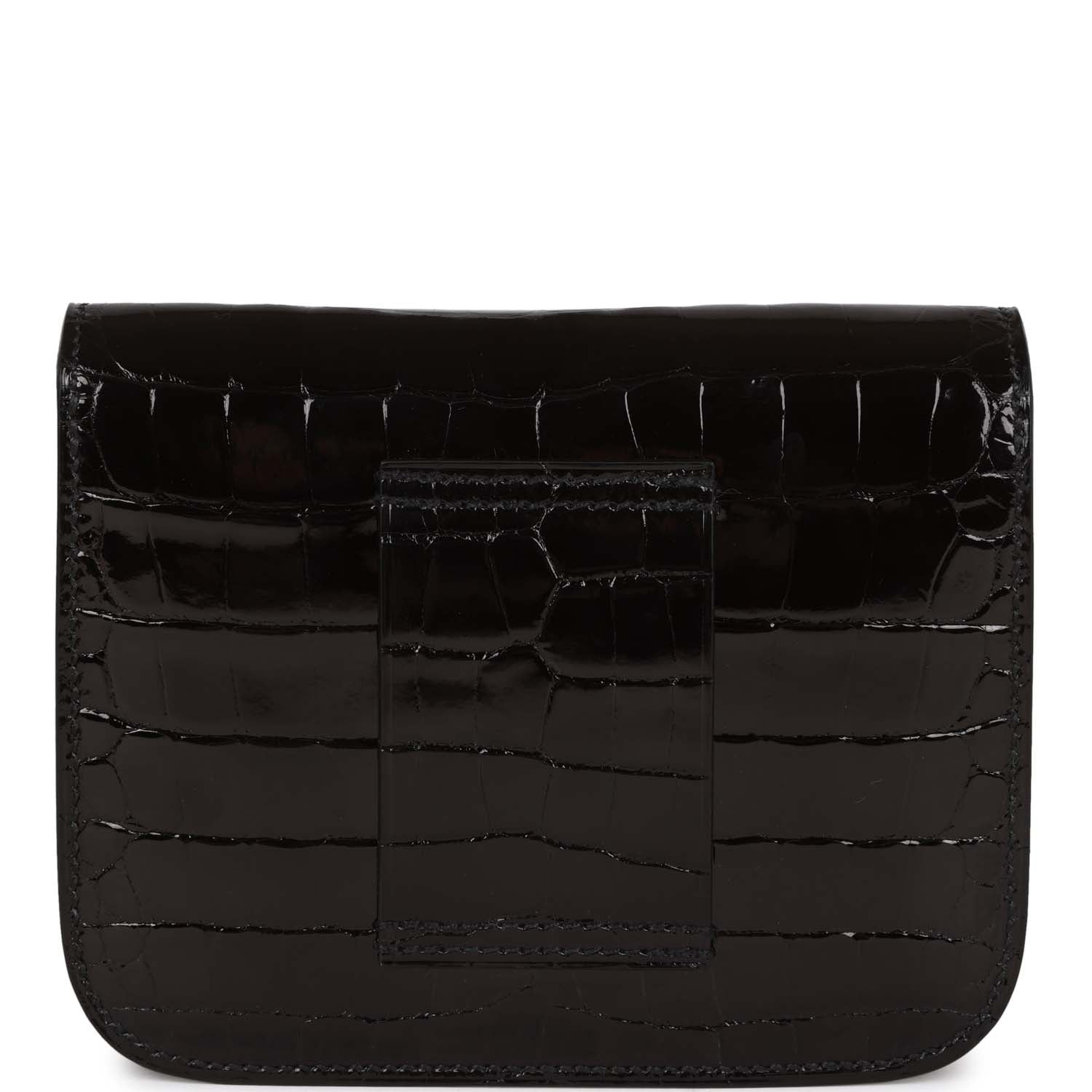 This Constance Slim Wallet is in Black Mississippiensis alligator leather with gold hardware and has tonal stitching, a rear belt loop, front flap with "H" snap lock closure, and removable coin pouch.