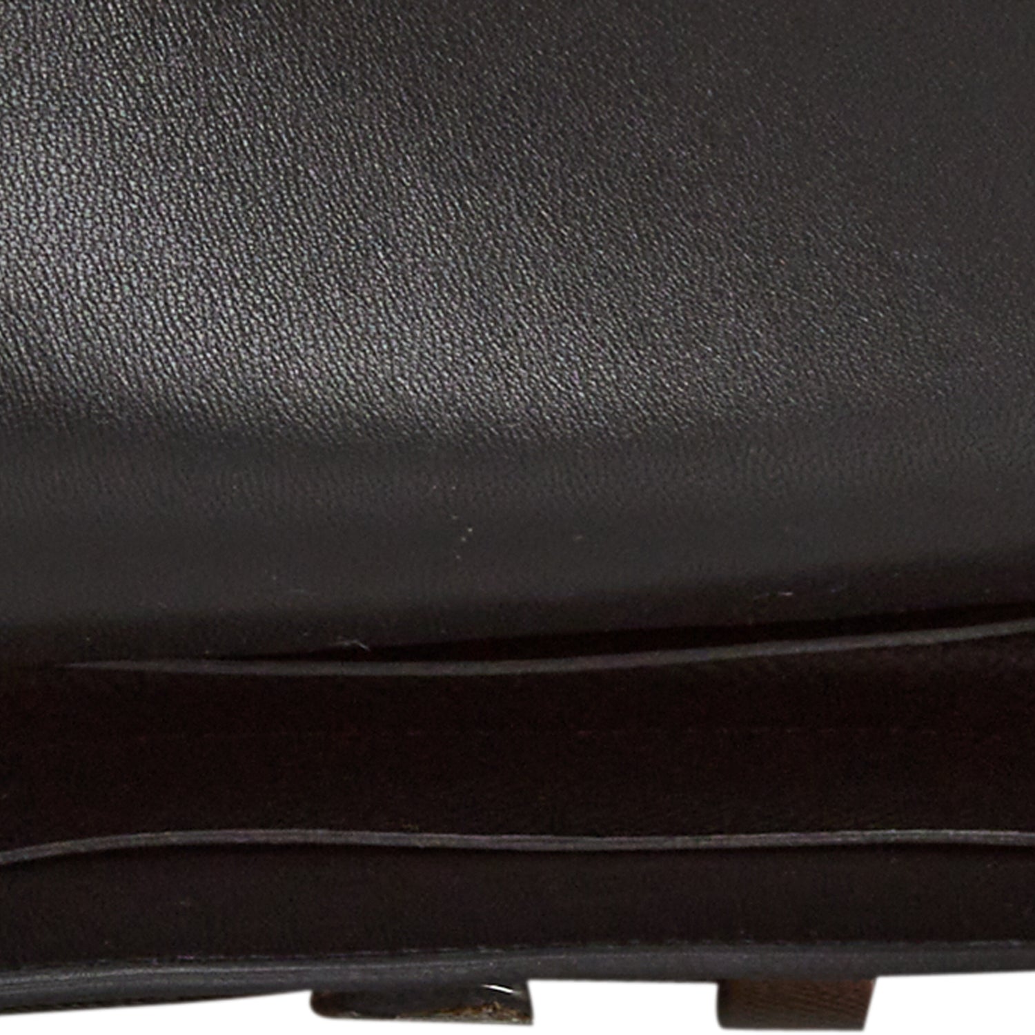 The interior is lined with black leather and features one slip pocket on the rear wall and one on the front wall.