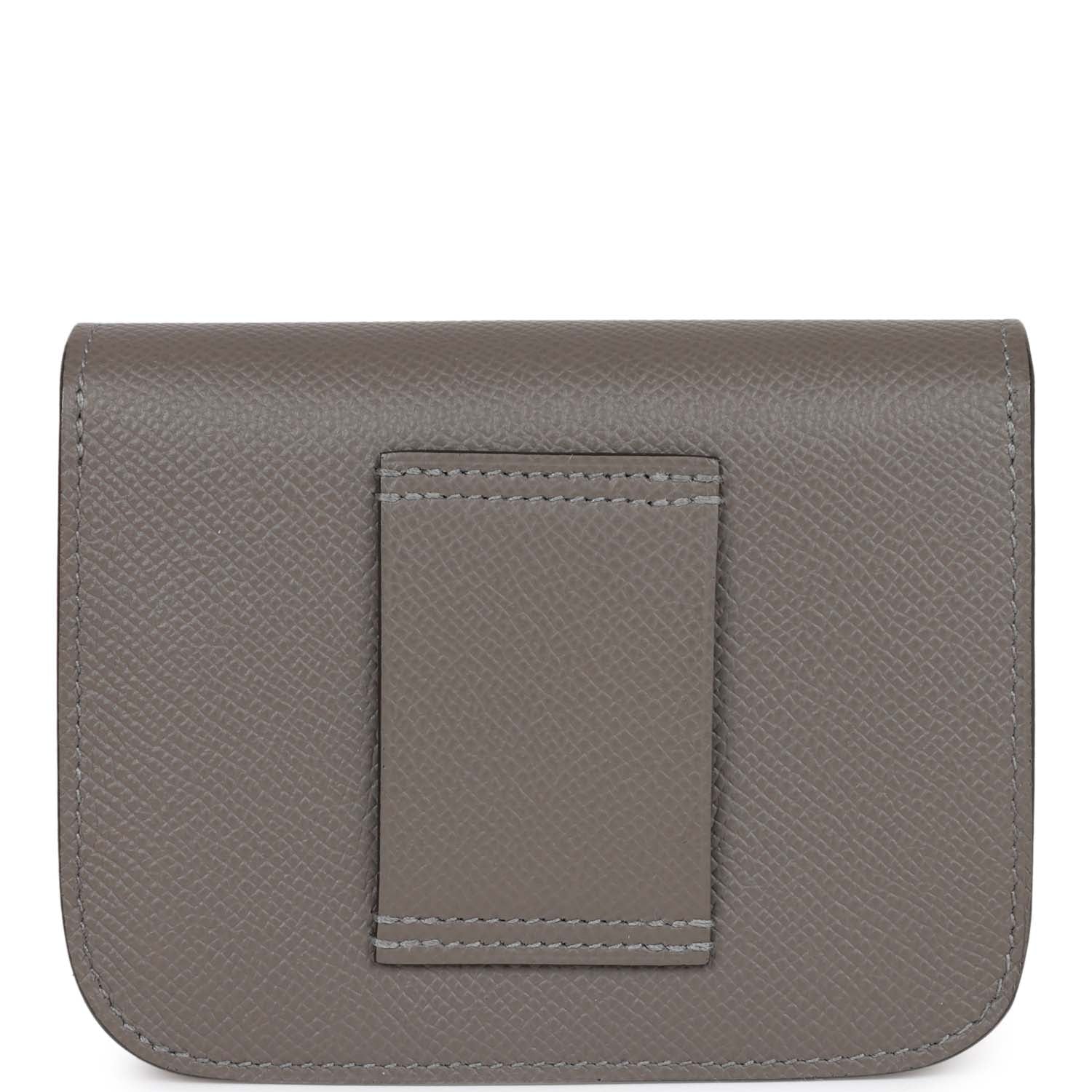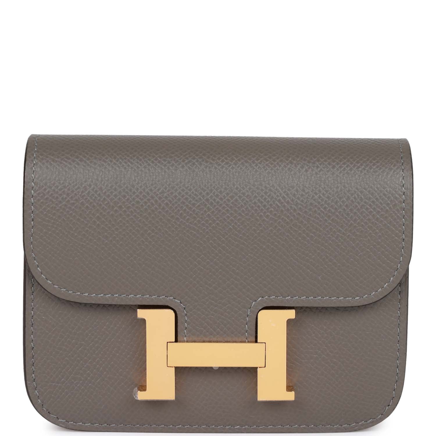 This Constance Slim Wallet is in Gris Meyer epsom leather with gold hardware and has tonal stitching, rear belt loop, front flap and removable coin pouch.