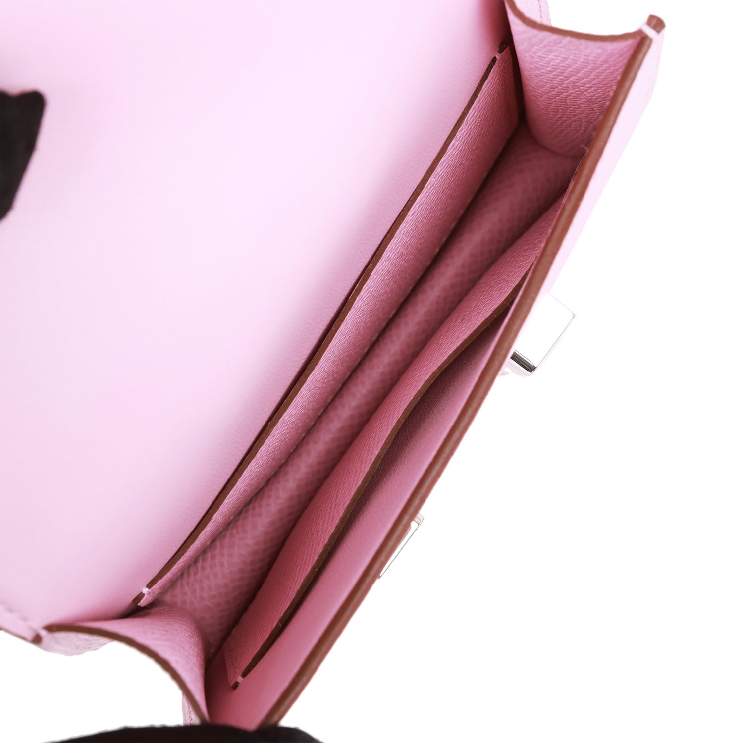 This Constance Slim Wallet is in Mauve Sylvestre epsom leather with palladium hardware and has tonal stitching, rear belt loop, front flap and removable coin pouch.