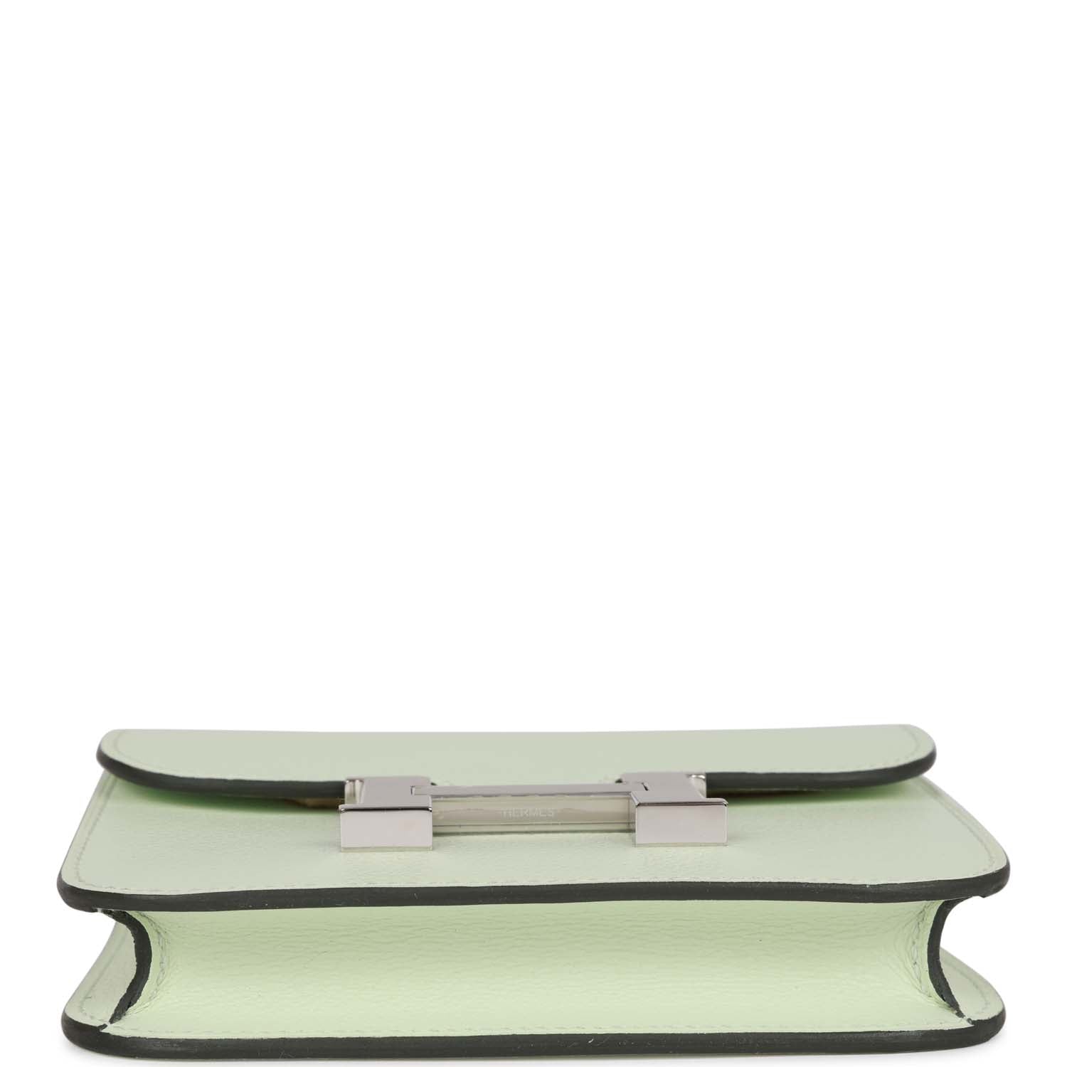 This Constance Slim Wallet is in Vert Fizz evercolor leather with palladium hardware and has tonal stitching, rear belt loop, front flap and removable coin pouch.