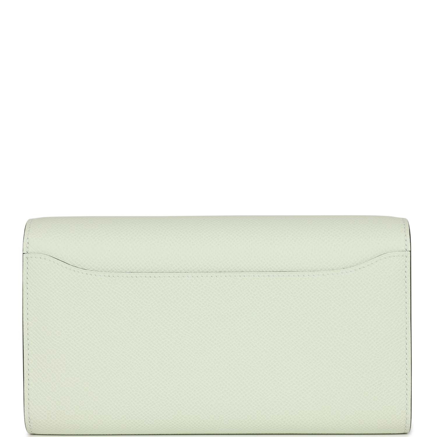 This Constance Wallet To Go is in Vert Fizz epsom leather with palladium hardware and has tonal stitching, metal "H" snap lock closure, open front compartment and removable crossbody strap.