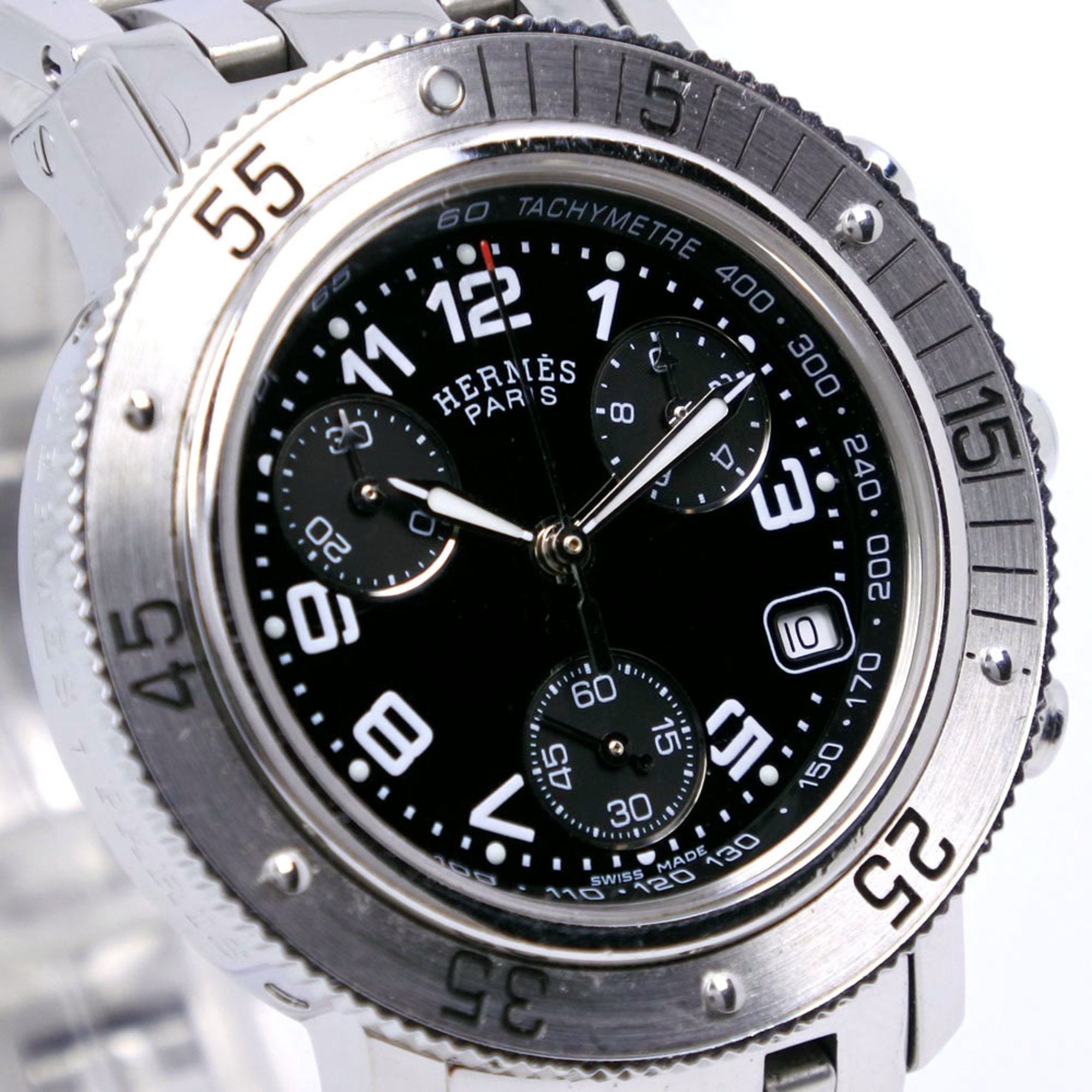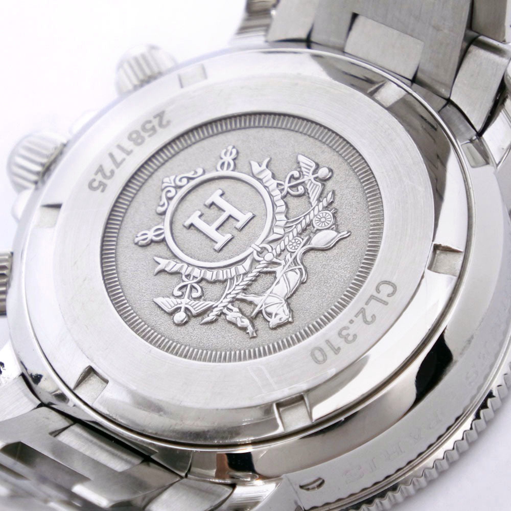 Hermes Diver's Watch Clipper CL2.310 Stainless Steel Silver Quartz Chronograph Ladies Black Dial