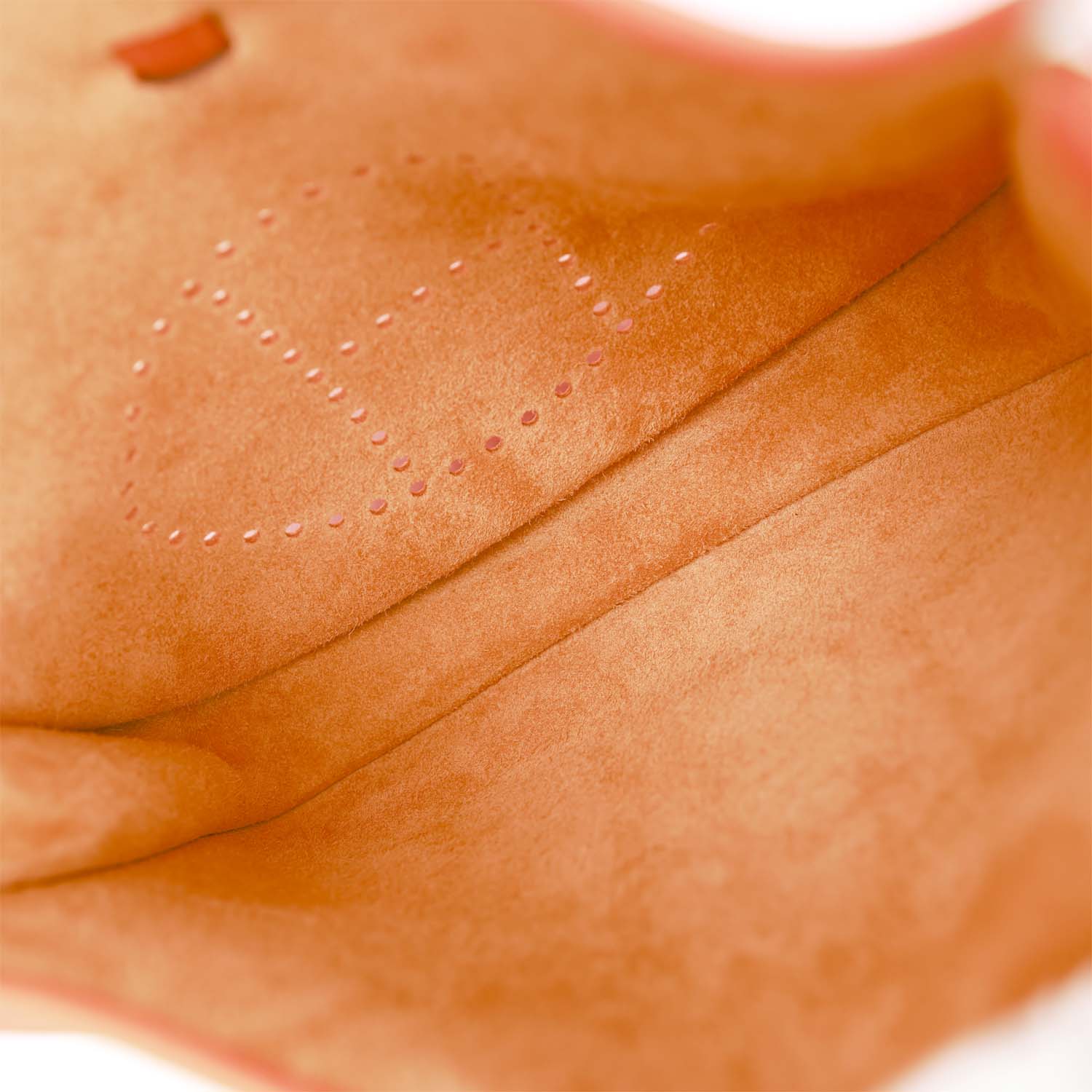 This Evelyne is in Feu clemence leather with palladium hardware and has tonal stitching, pull tab top closure and a Feu removable canvas and leather shoulder/crossbody strap.