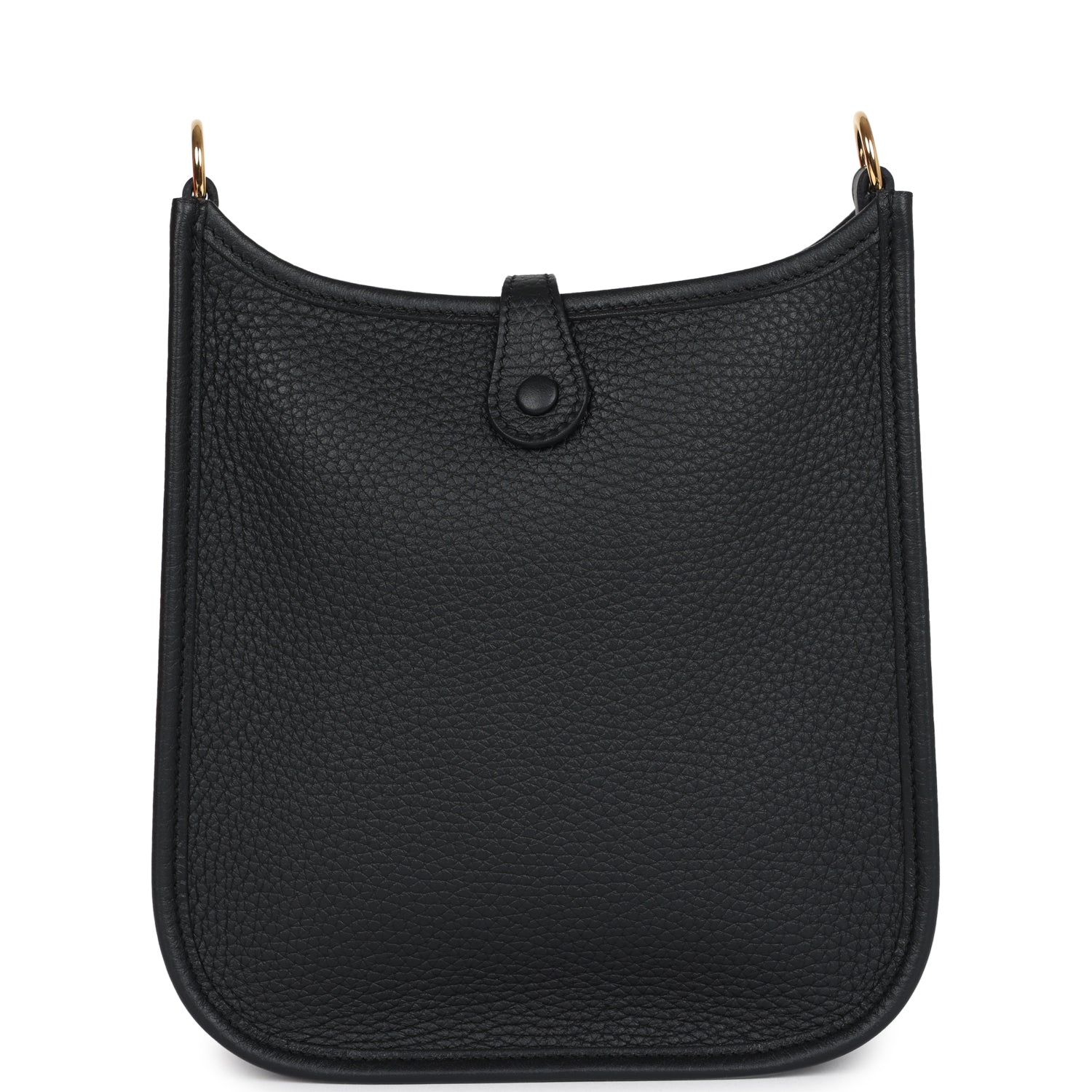 This Evelyne TPM is in Black clemence leather with gold hardware and features tonal stitching stitching, pull tab top closure and a removable Black canvas and leather shoulder/crossbody strap.
