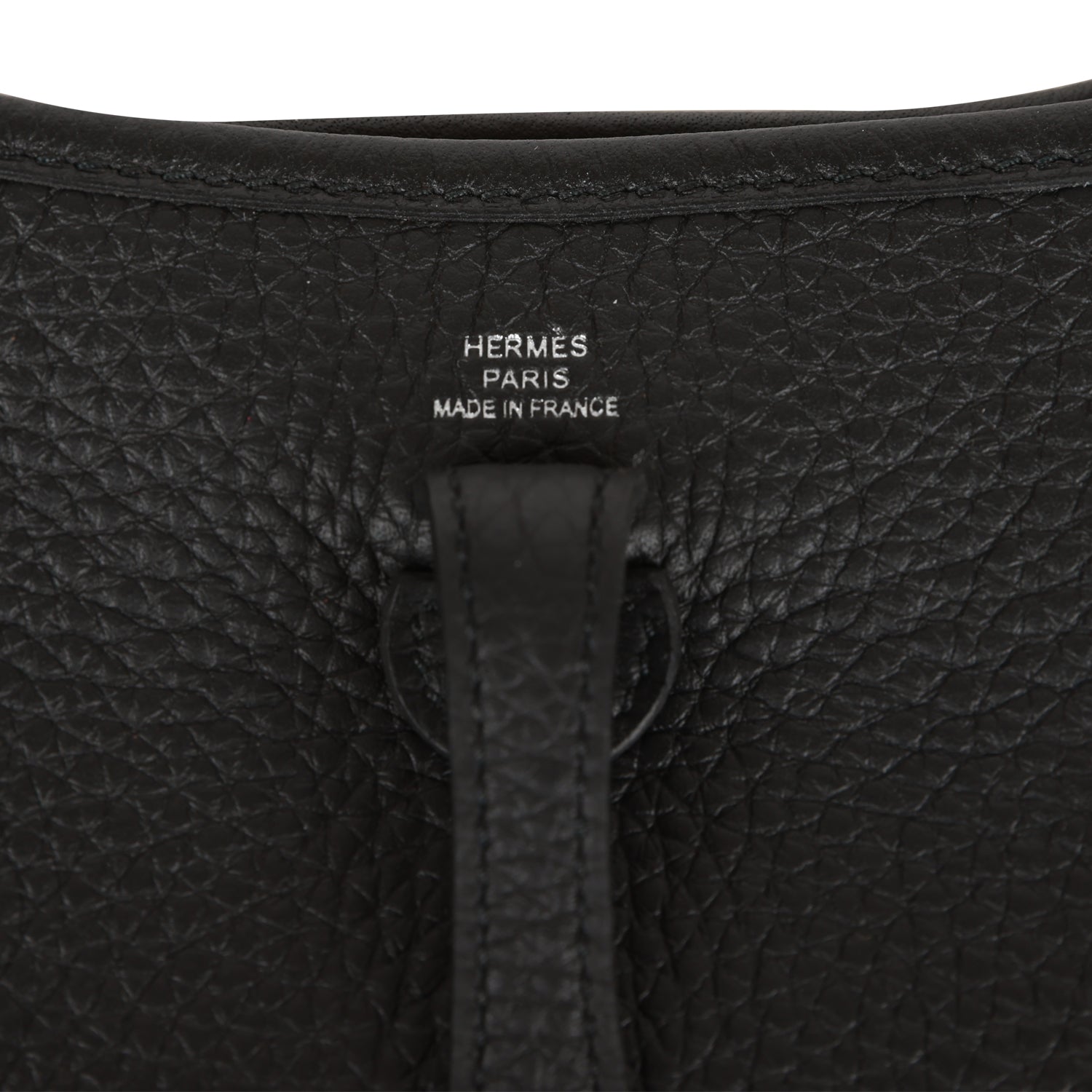This Evelyne TPM is in Black clemence leather with palladium hardware and features tonal stitching stitching, pull tab top closure and a black removable canvas and leather shoulder/crossbody strap.
