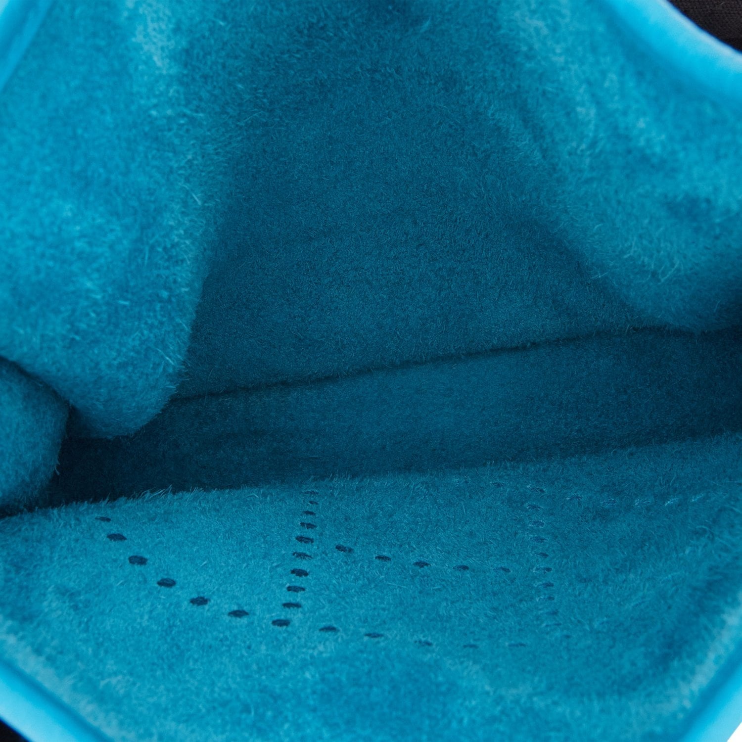 This Evelyne TPM is in Bleu Frida clemence leather with palladium hardware and features tonal stitching stitching, pull tab top closure and a Bleu Frida removable canvas and leather shoulder/crossbody strap.