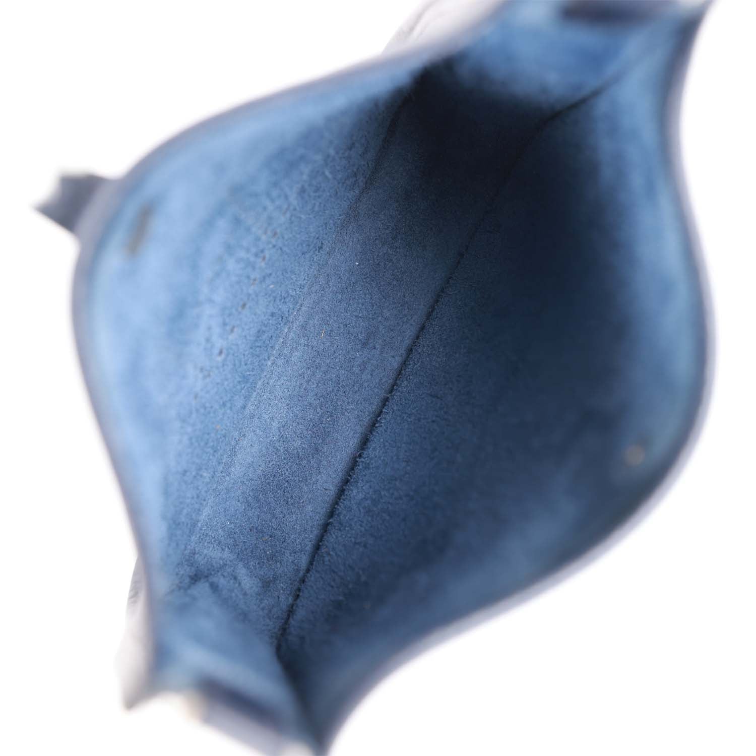This Evelyne is in Bleu Nuit clemence leather with palladium hardware and has tonal stitching, pull tab top closure and a Bleu Nuit removable canvas and leather shoulder/crossbody strap.