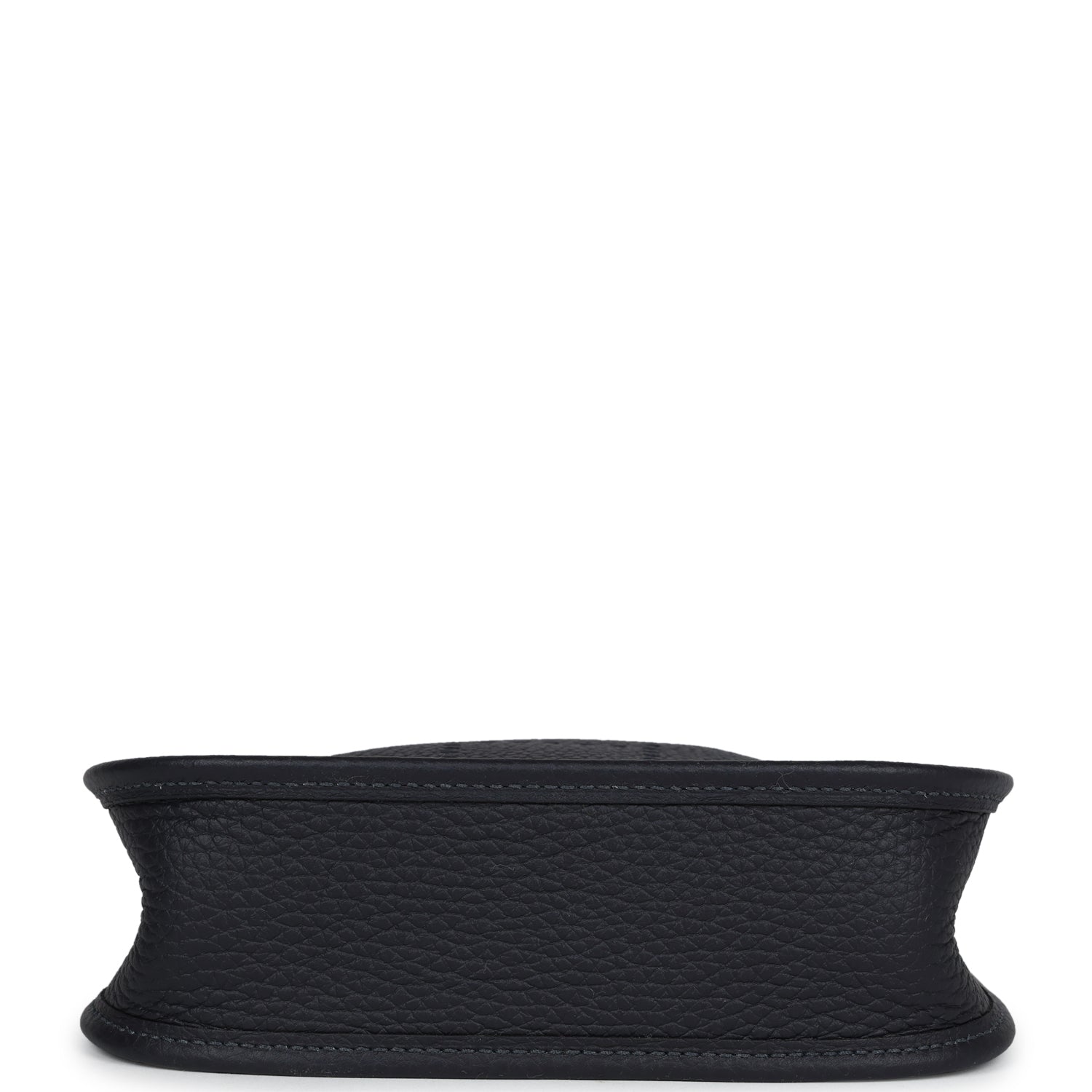 This Hermes Evelyne TPM is in Caban clemence leather with palladium hardware, tonal stitching, large perforated H in circle (front), pull tab top snap closure and removable fabric shoulder/crossbody strap.