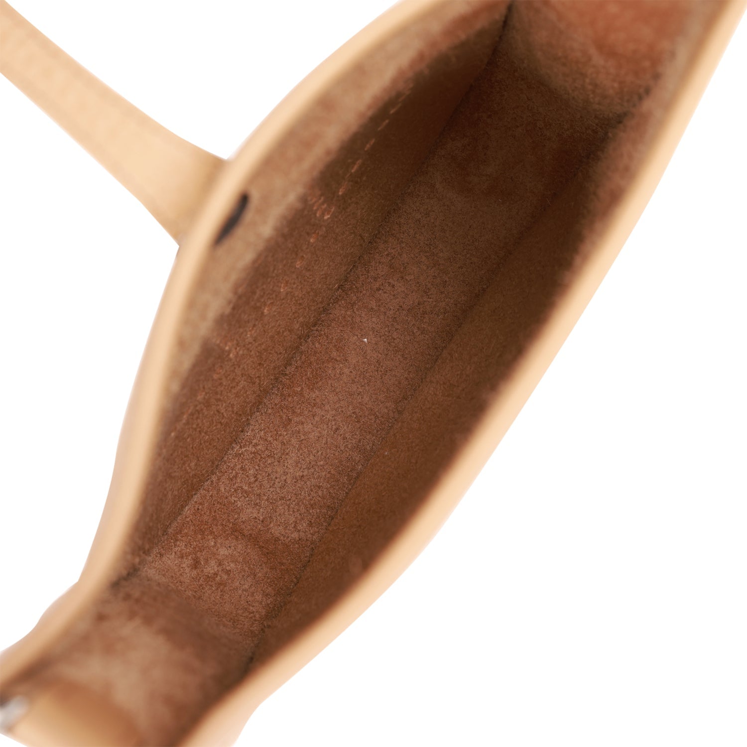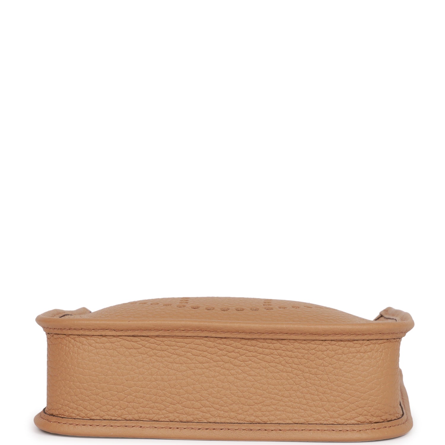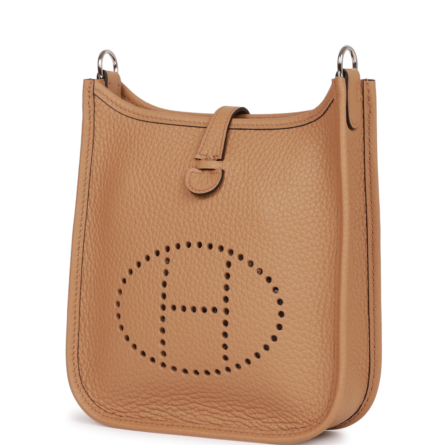 This Evelyne is in Chai clemence leather with palladium hardware and has tonal stitching, pull tab top closure and a Quadrille removable canvas and leather shoulder/crossbody strap.