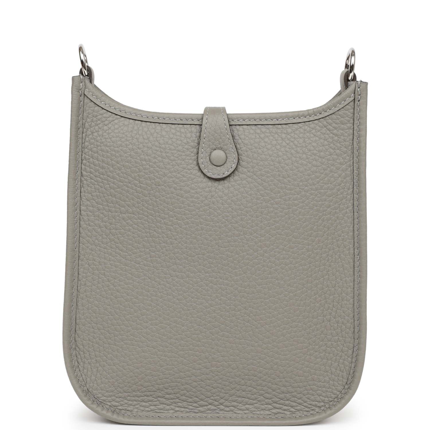 This Evelyne TPM is in Gris Meyer clemence leather with pallladium hardware and features tonal stitching stitching, pull tab top closure and a Gris Meyer removable canvas and leather shoulder/crossbody strap.