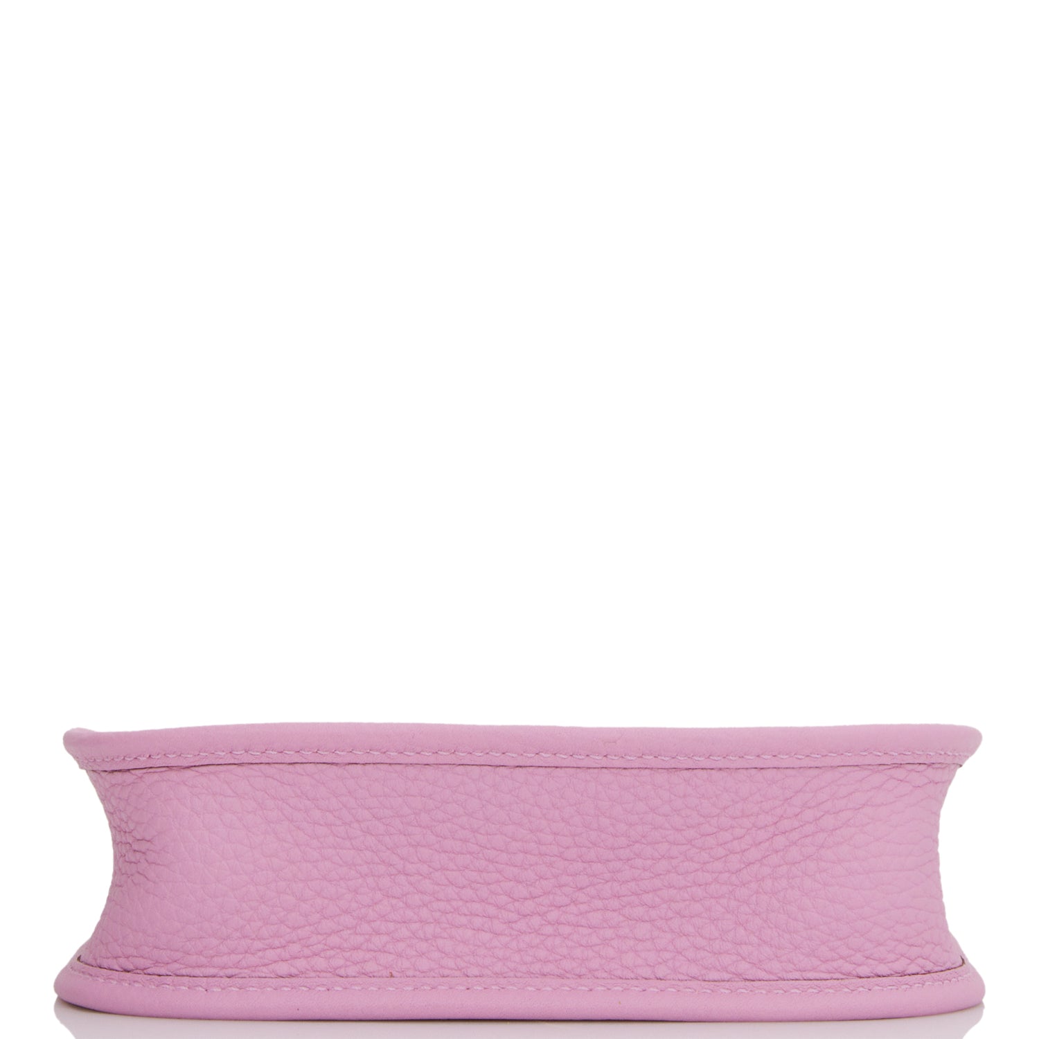 This Evelyne TPM is in Mauve Sylvestre clemence leather with palladium hardware and features tonal stitching stitching, pull tab top closure and a Craie removable canvas and leather shoulder/crossbody strap.