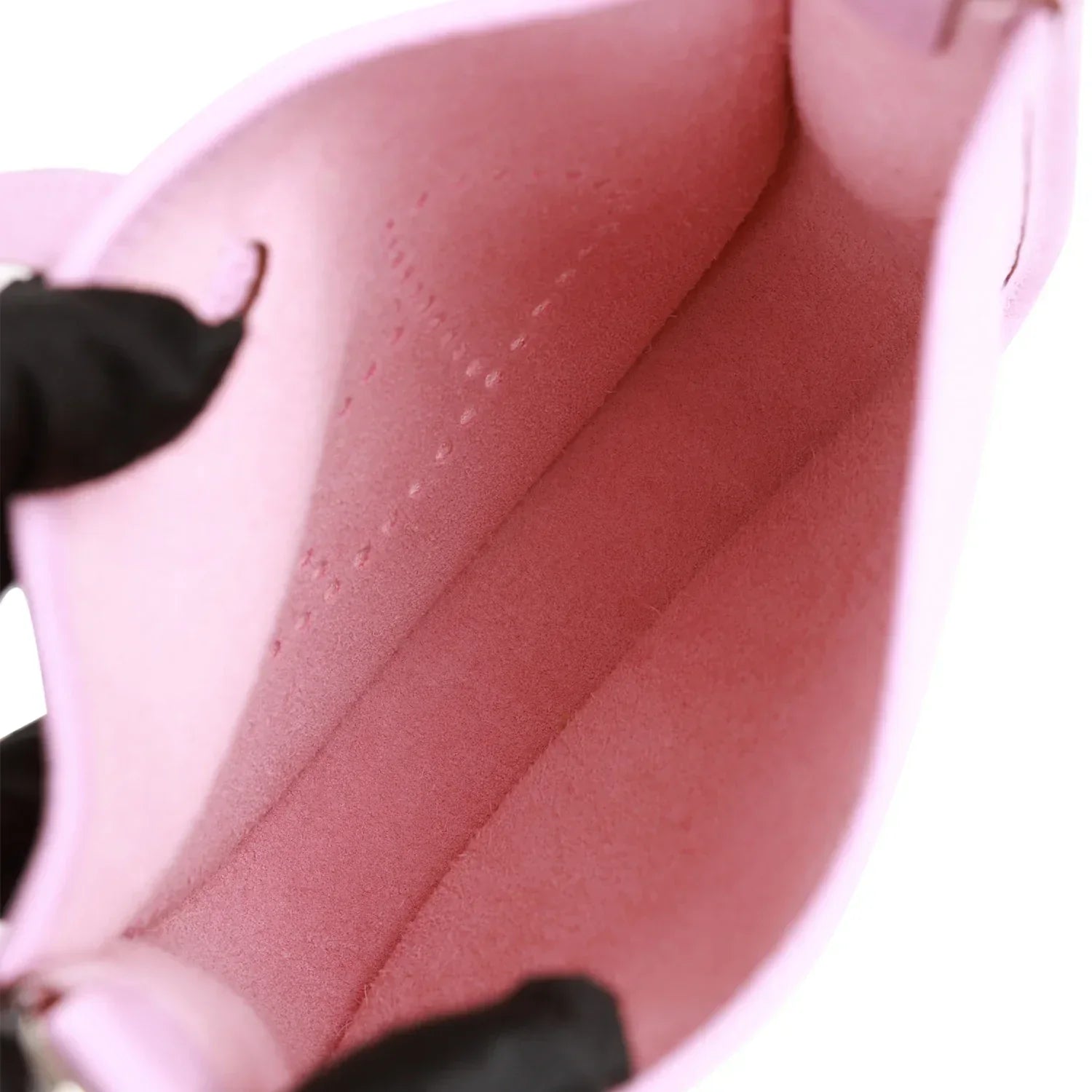 This Evelyne TPM is in Mauve Sylvestre clemence leather with palladium hardware and features tonal stitching stitching, pull tab top closure and a Mauve Sylvestre removable canvas and leather shoulder/crossbody strap.