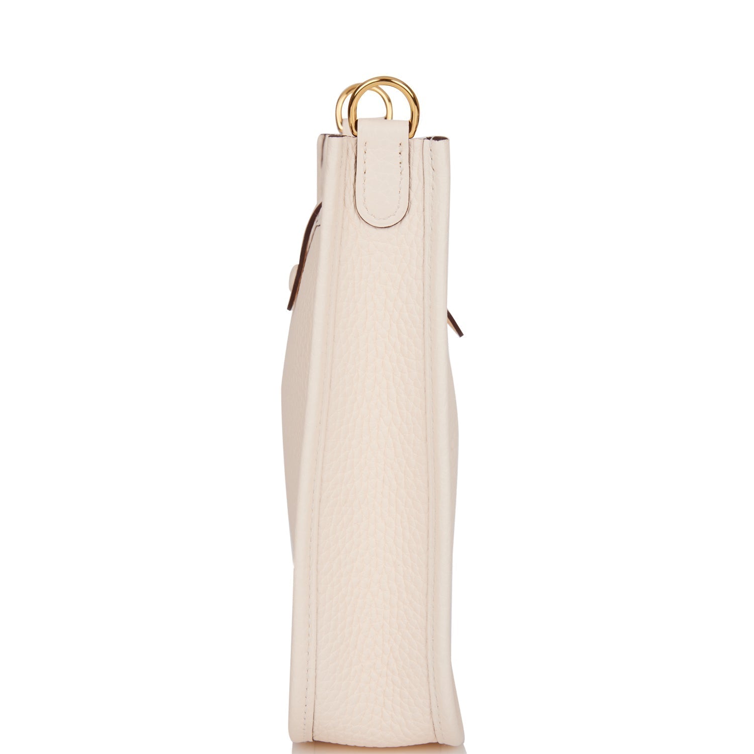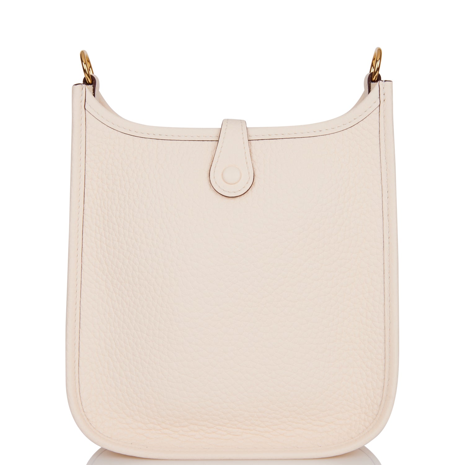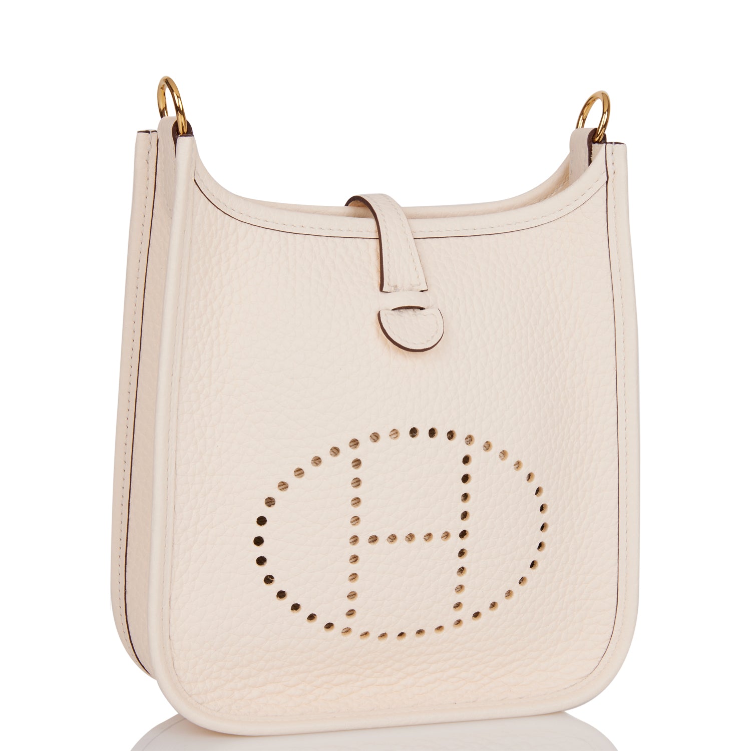 This Evelyne TPM is in Nata clemence leather with gold hardware and features tonal stitching stitching, pull tab top closure and a flipperball removable canvas and leather shoulder/crossbody strap.