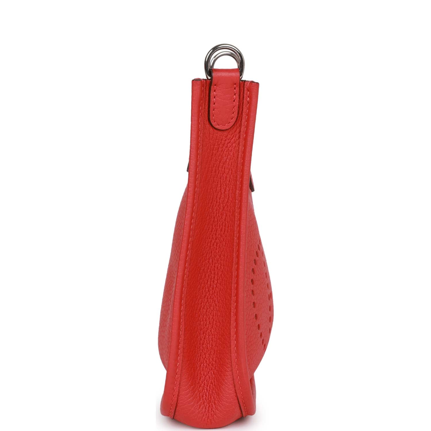 This Evelyne TPM messenger bag is in Rouge Tomate clemence leather with palladium hardware and has tonal stitching, pull tab top closure and a rouge tomate removable canvas and leather shoulder/crossbody strap.
