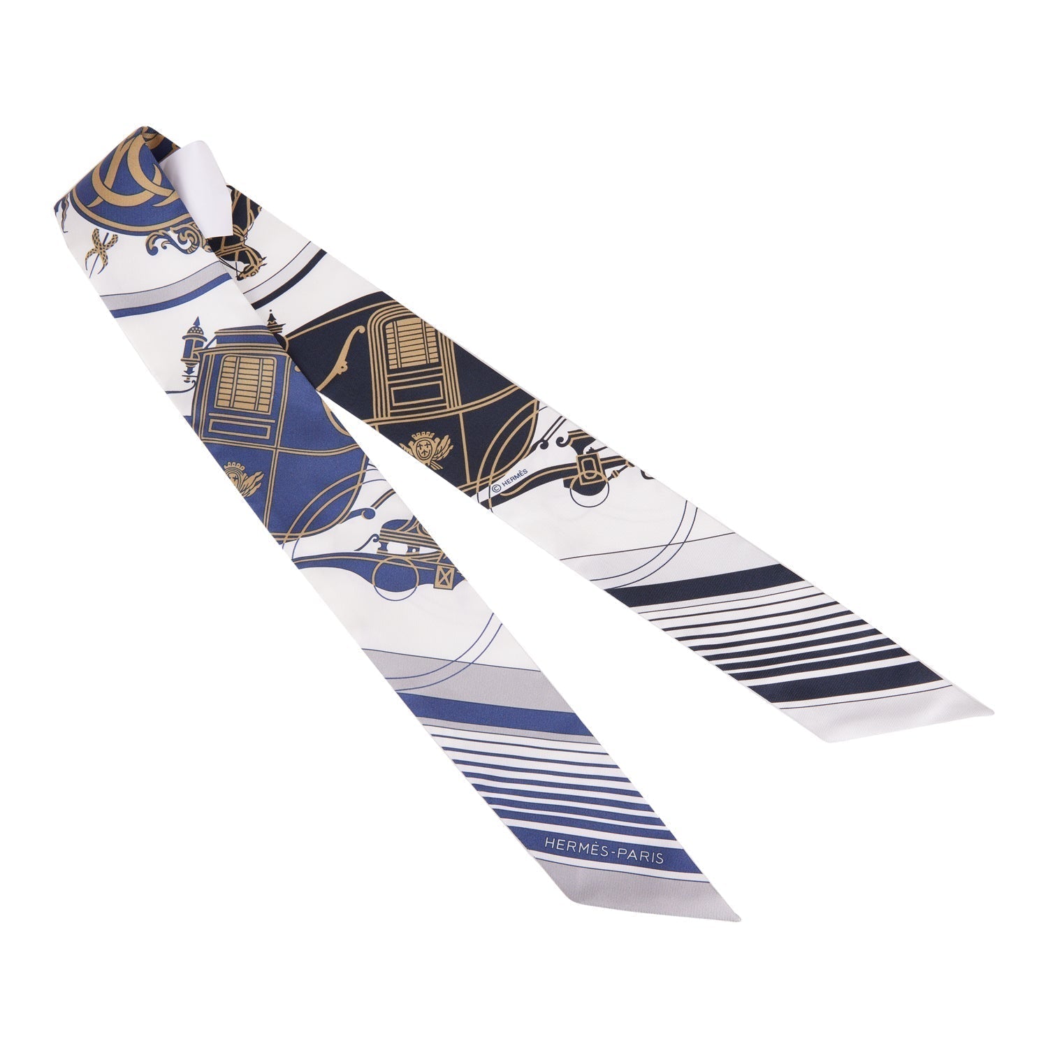 Hermes "Ex-Libris Les Parisiennes" silk twilly designed by Kiraz and Hugo Grygkar in a white colorway.