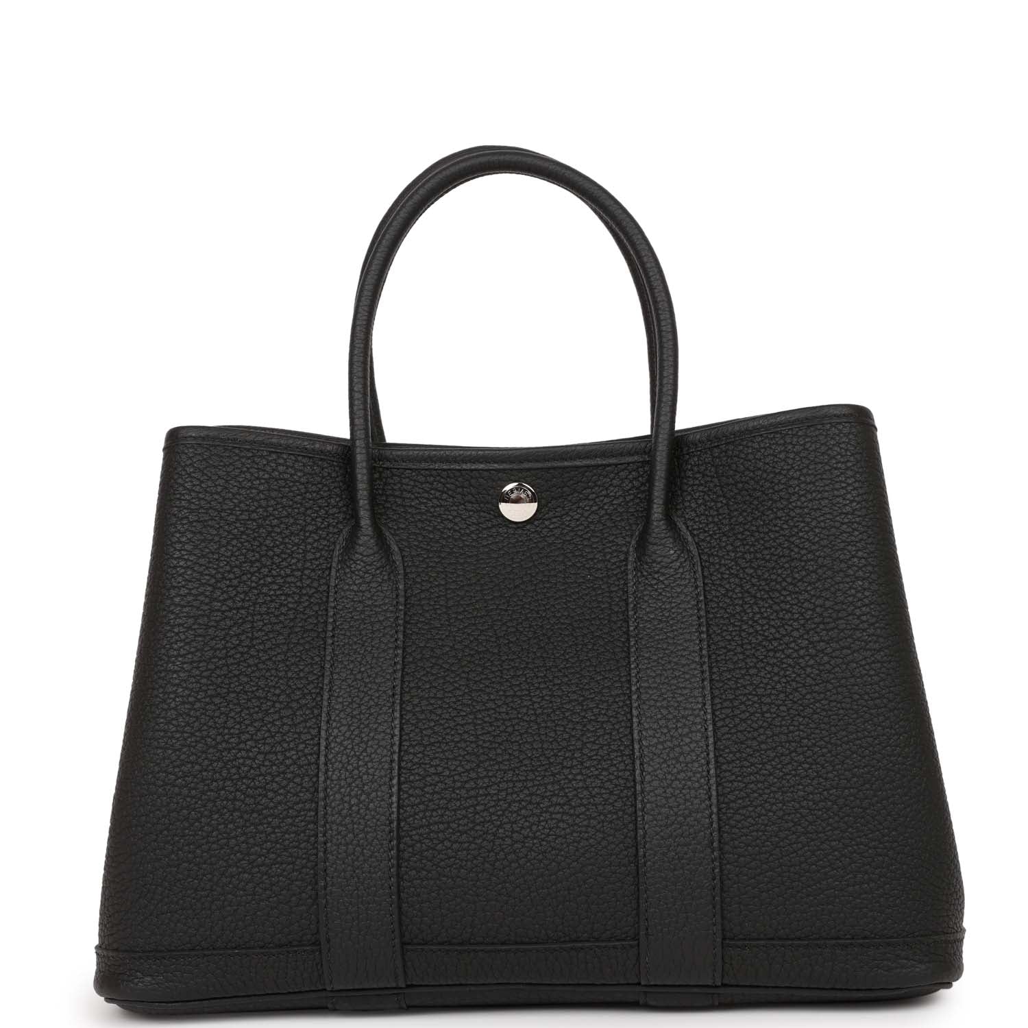 This Garden Party is of Black Negonda with palladium plated hardware and features tonal stitching, Clou de Selle snap closure and double rolled handles.