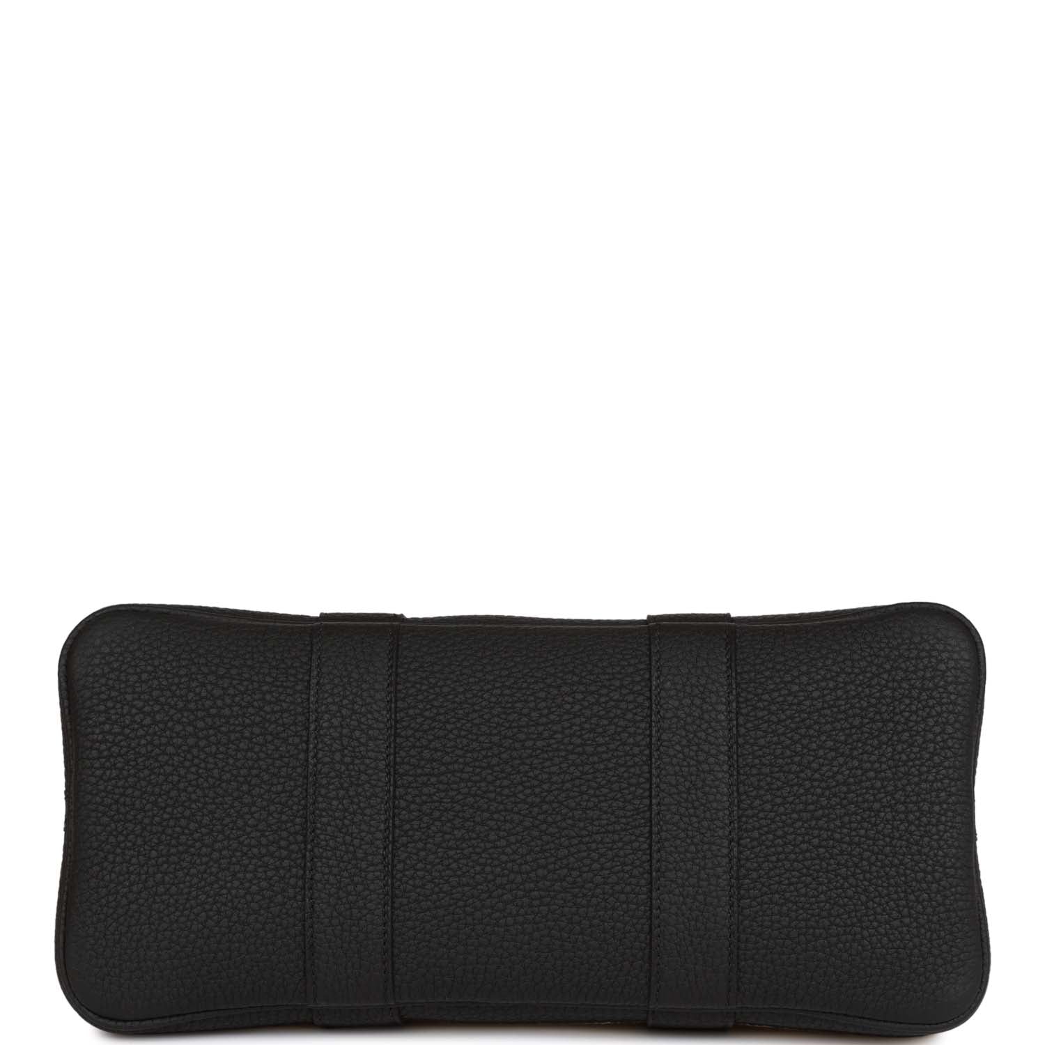 The interior is lined with Black herringbone toile and leather.