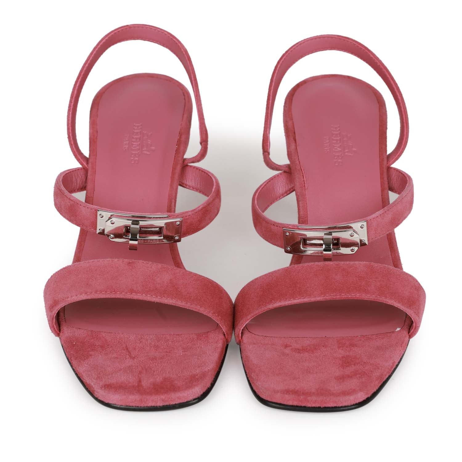 This pair of Glamour Heels are in Rose Aphrodite Suede and features an adjustable ankle strap with the signature Kelly turnlock closure.