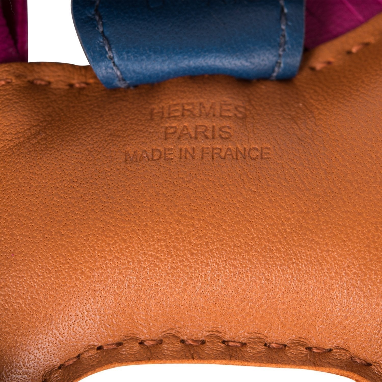 This Grigri Rodeo bag charm is in Gold Milo lambskin leather and accented with a Rose Pourpre mane and tail and a Bleu Nuit saddle and holder.