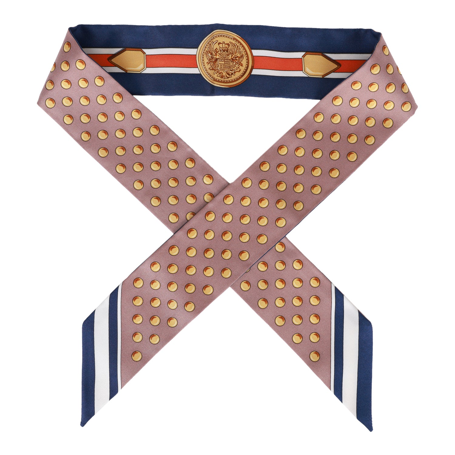 Hermes "Grand Tralala" Marron Glace Silk Twilly Pair