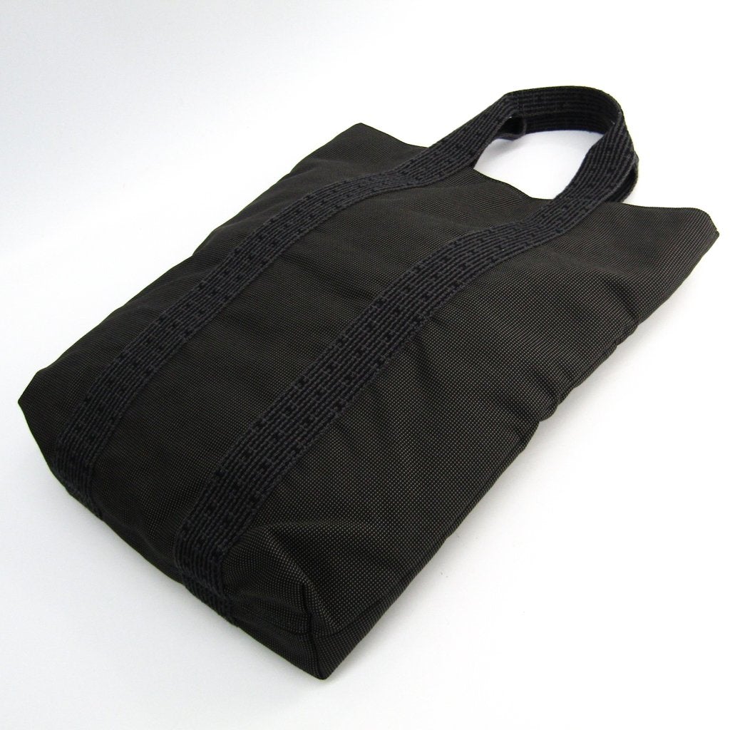 This is an , HERMES Herline Sac Cabas Tote Bag. It features a gray cotton canvas with silver-tone hardware, canvas handles, an open pocket, and a zip closure. It's a chic Hermes tote for every day.