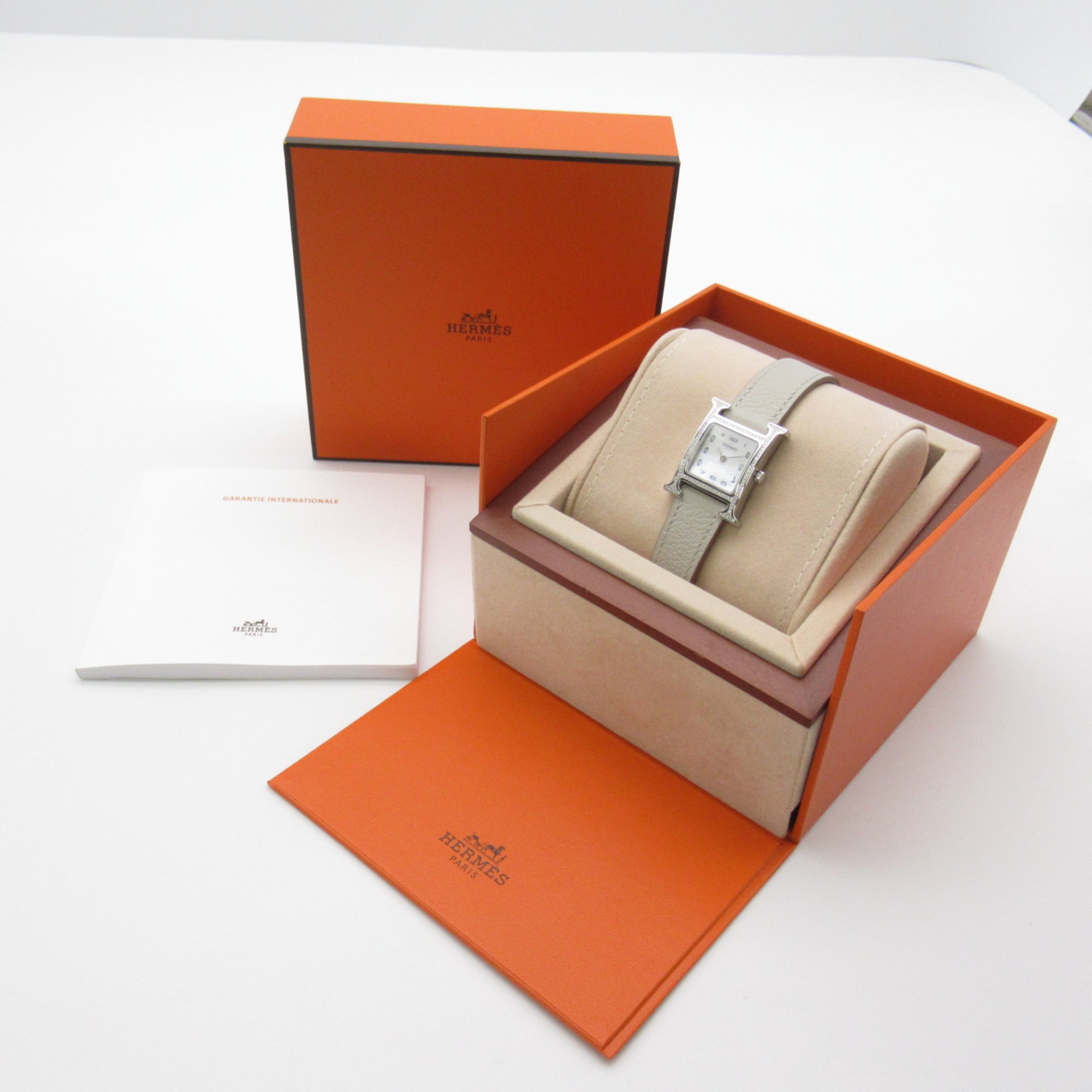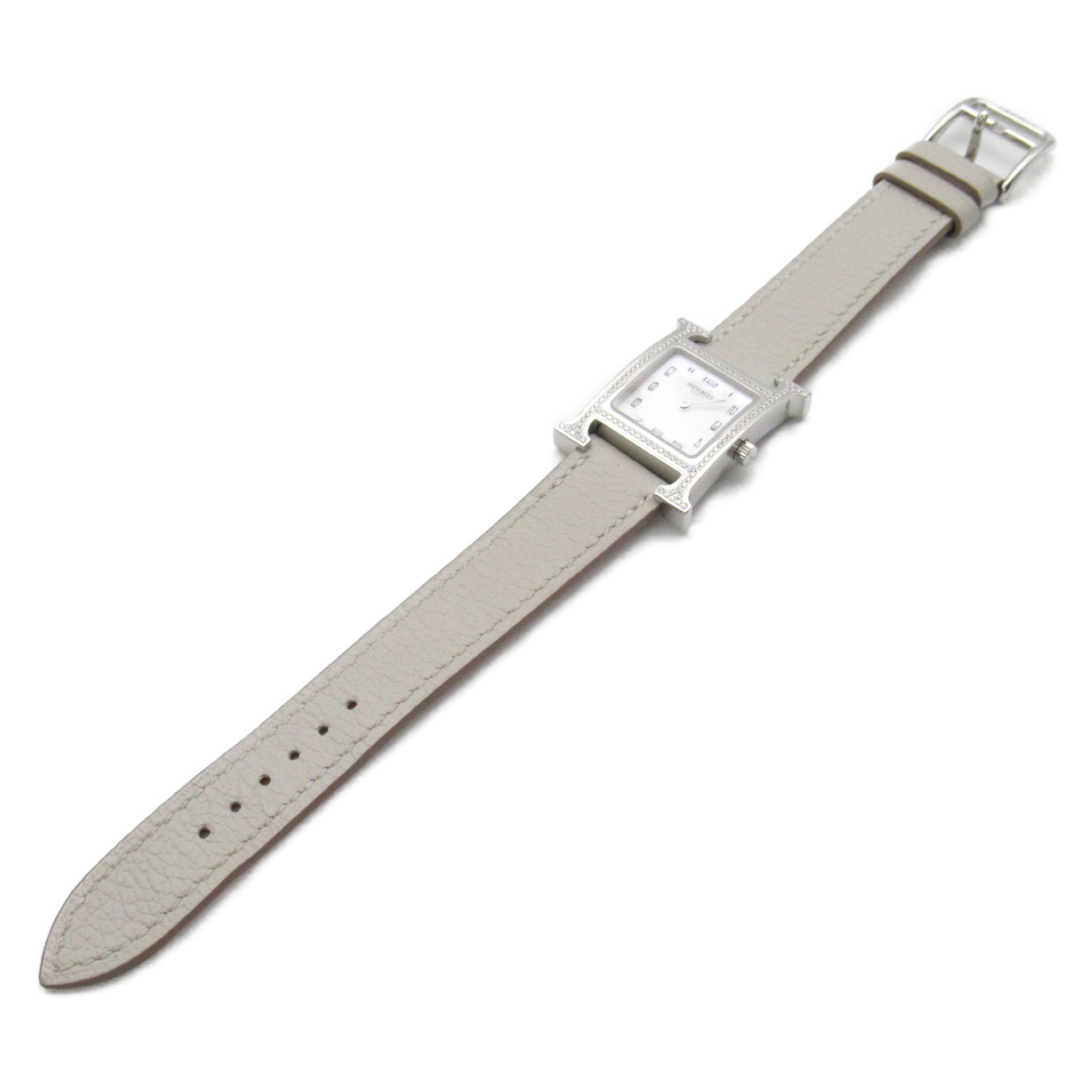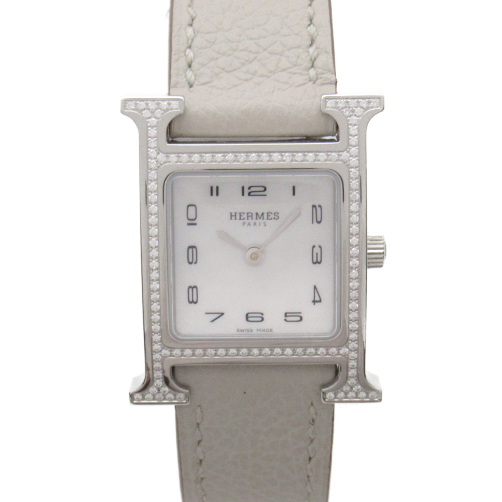 HERMES H Watch Diamond Bezel Wrist Watch Watch Wrist Watch HH1.235 Quartz White White shell Stainless Steel Leather b