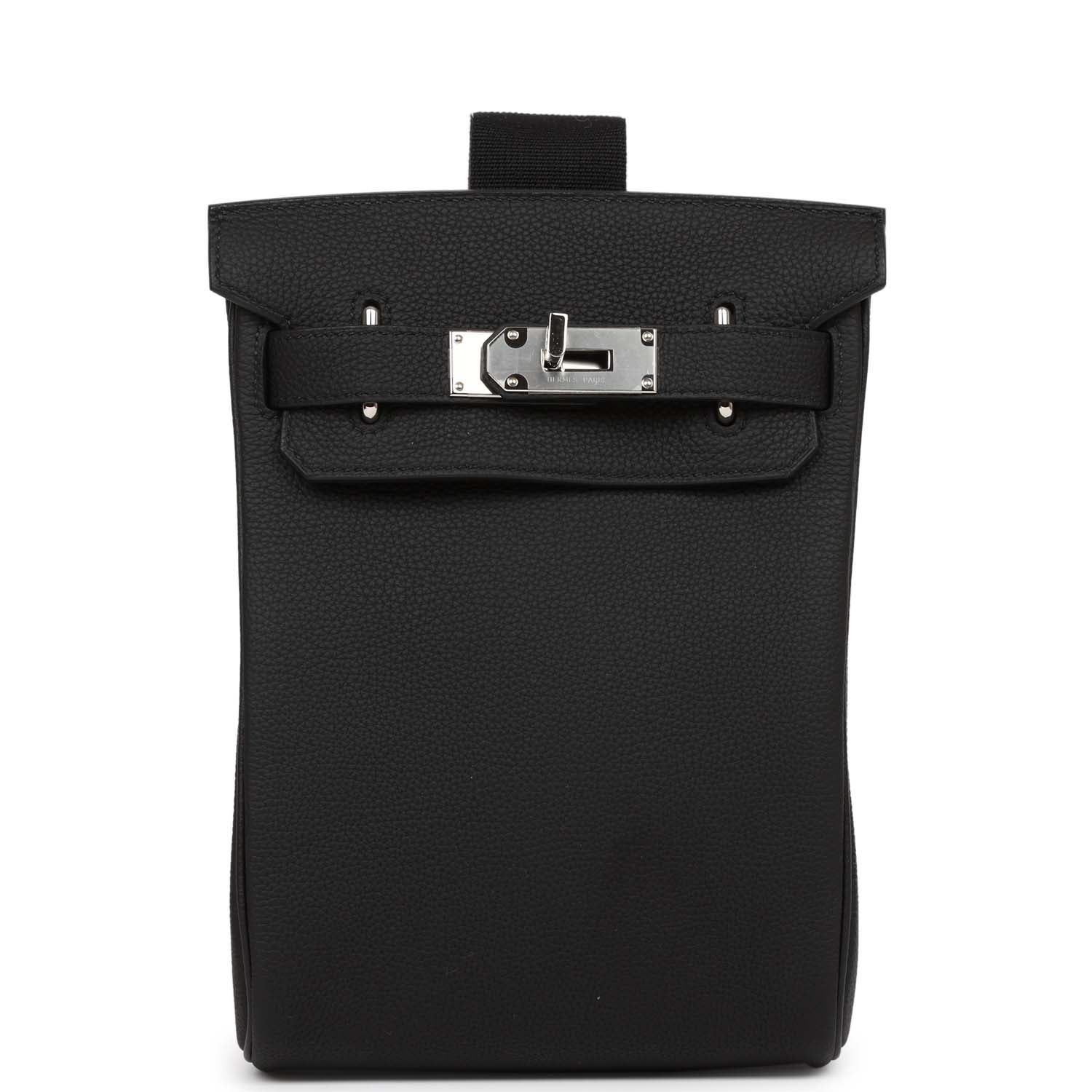 This HAC A Dos PM Backpack is in Black togo leather with palladium hardware and has tonal stitching, two straps with front toggle closure, and an adjustable shoulder strap.